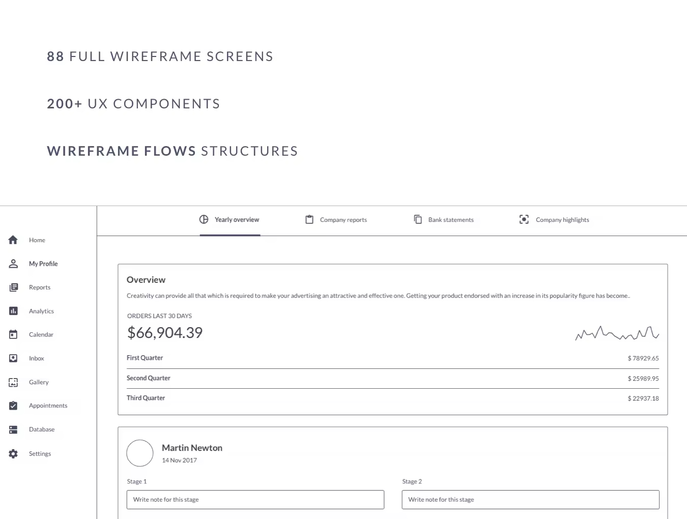 完整的网站线框图屏幕,UX元素和演示流程的大集合。此款UX线框图设计套件是启动新的Web应用程序项目所需的唯一工具,并且可以为您的项目节省数百小时的时间。这些屏幕和元素将帮助您立即为客户设计漂亮的界面。Sketch和Adobe XD文件,使用免费Google字体。