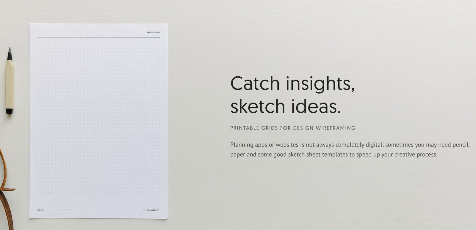 直接在电脑上绘制线框图对于手绘来讲成本会更大一些,手绘稿会更加方便我们快速输出想法,Sneakpeekit提供了常用的绘制模板,你只需要打印出来就可以在上面快速的绘制线框图,省时省心。