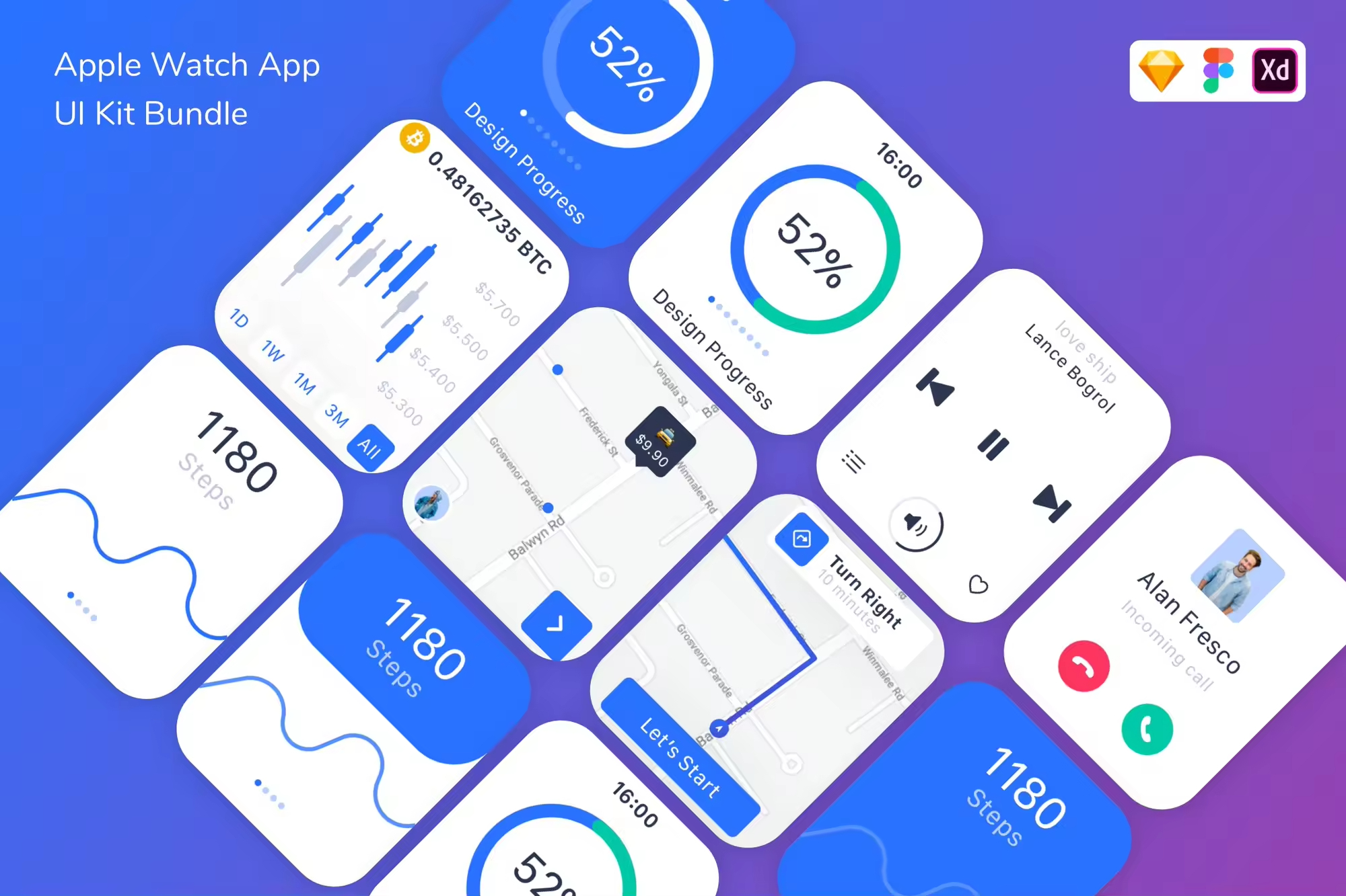 Apple Watch手表应用UI设计套件是根据现代设计趋势设计的,修改模板非常简单。