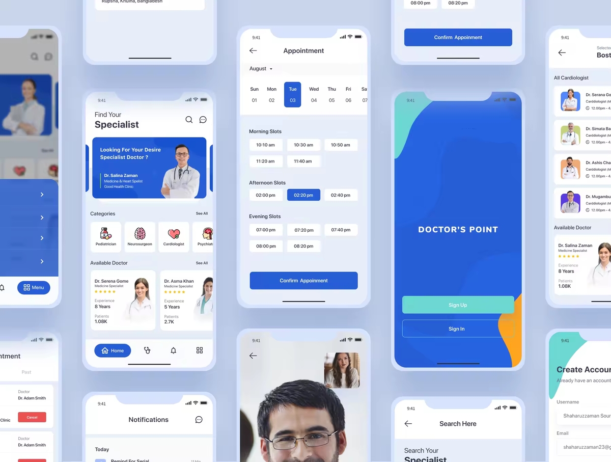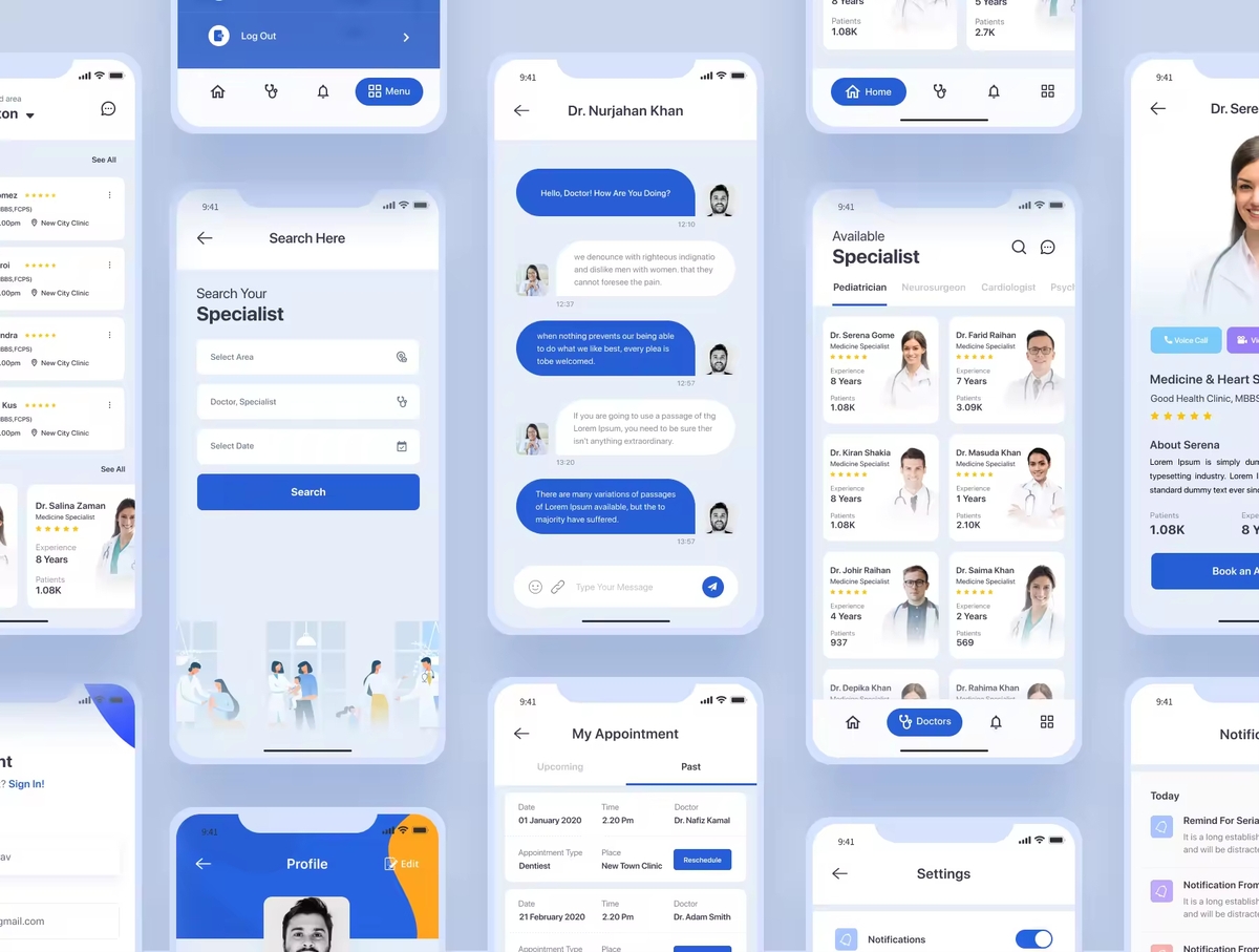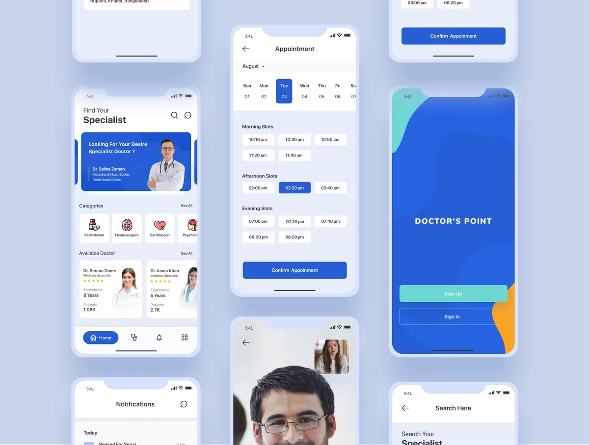 这是为医生、医院、诊所、牙科医院设计的在线医疗APP iOS UI套件。完美的工具,可帮助您创建医生的就诊和预约应用程序。它具有简单的设置和医疗或医院业务所需的许多功能,可给人留下深刻的印象。