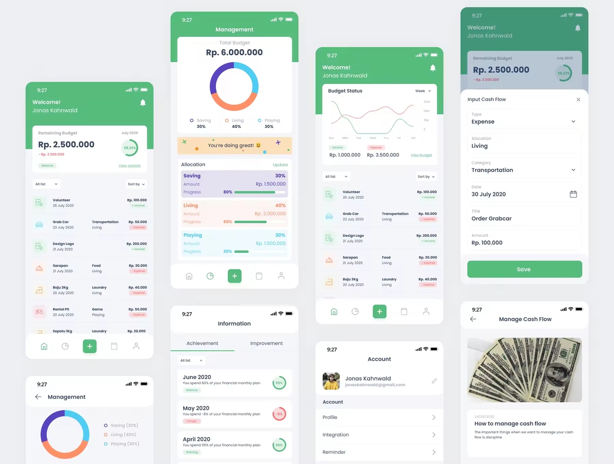 金融财务助理iOS UI套件,轻松实现每月预算。花了很多时间研究有关财务问题的用户体验。