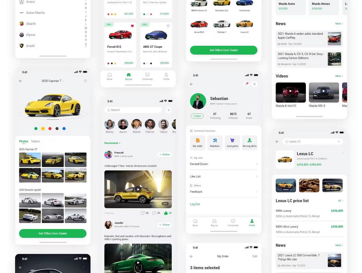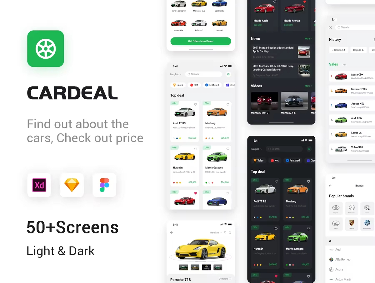 汽车销售信息应用程序iOS UI套件。您可以使用此应用程序完成所有这些以及更多操作。做您的汽车研究-了解最新的汽车,流行的汽车和即将推出的汽车。查看您所在城市的各种汽车价格,比较两辆或更多汽车的规格和功能。该应用程序包含适用于iOS的50多种高质量屏幕,可供使用的iPhone X屏幕尺寸(375px X 812px)。