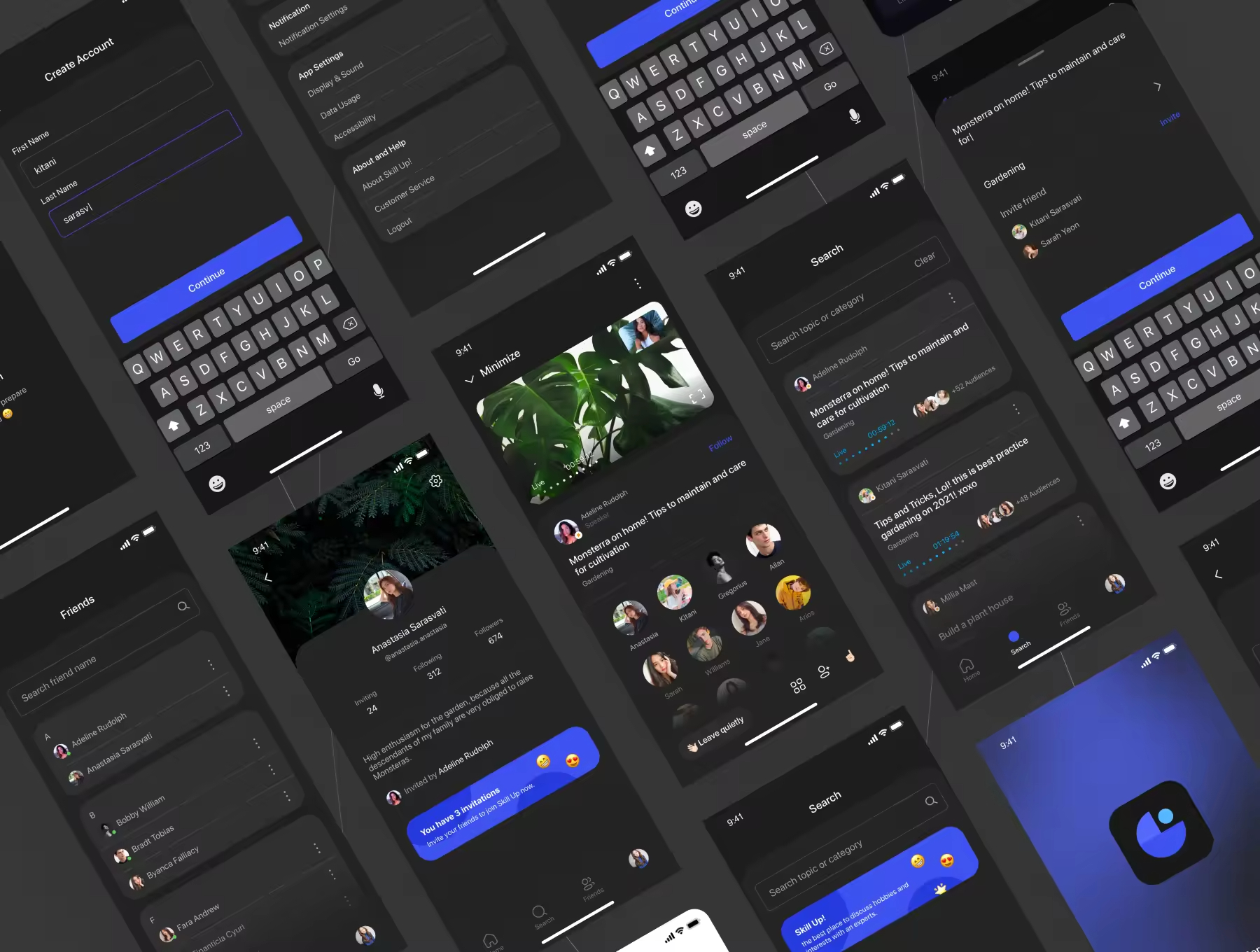 技能提升在线学习App应用 UI 套件,一个包含 56 个屏幕的UI套件完整包。易于在 Figma、Sketch 和 Adob??e XD 中使用。包括一个风格指南,28 屏幕轻主题。28 个屏幕深色主题和可自定义的组件。使用这个简洁、现代且出色的设计屏幕开发您的应用程序。