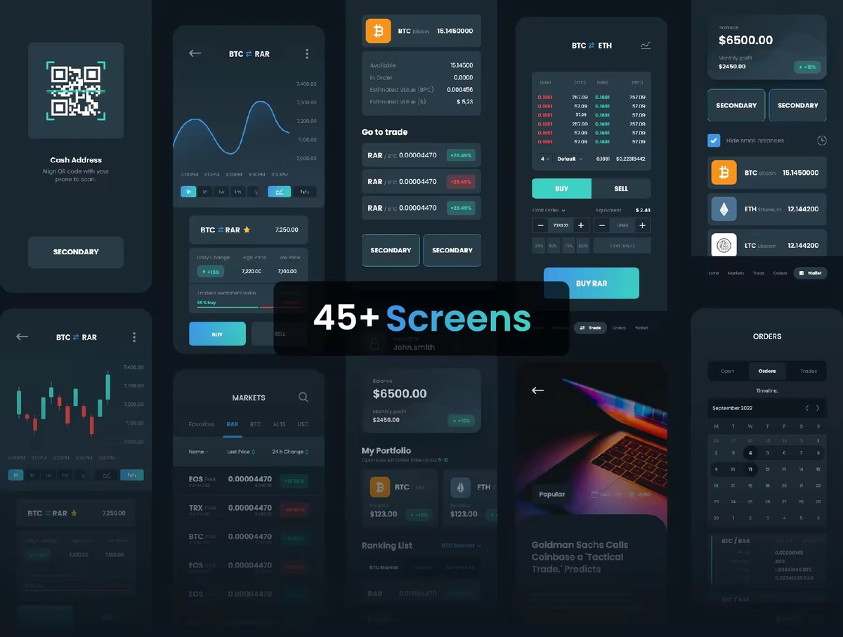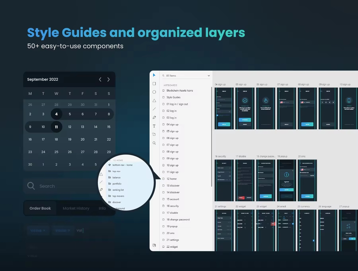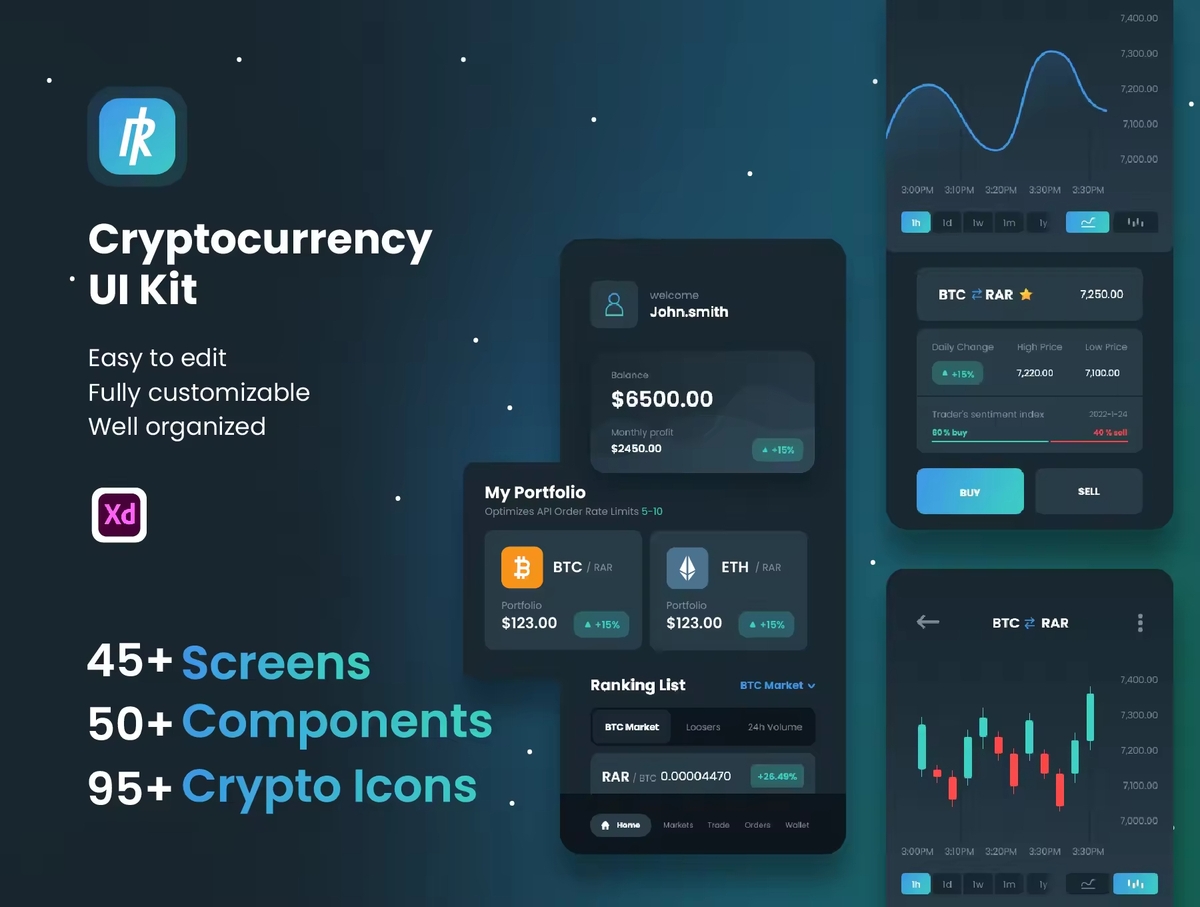 这是为加密货币业务创建的新 UI 套件。您可以轻松买卖加密货币的平台。所有图层组织良好且易于使用。我们创建了许多组件和样式指南,您可以根据自己的品牌进行自定义。