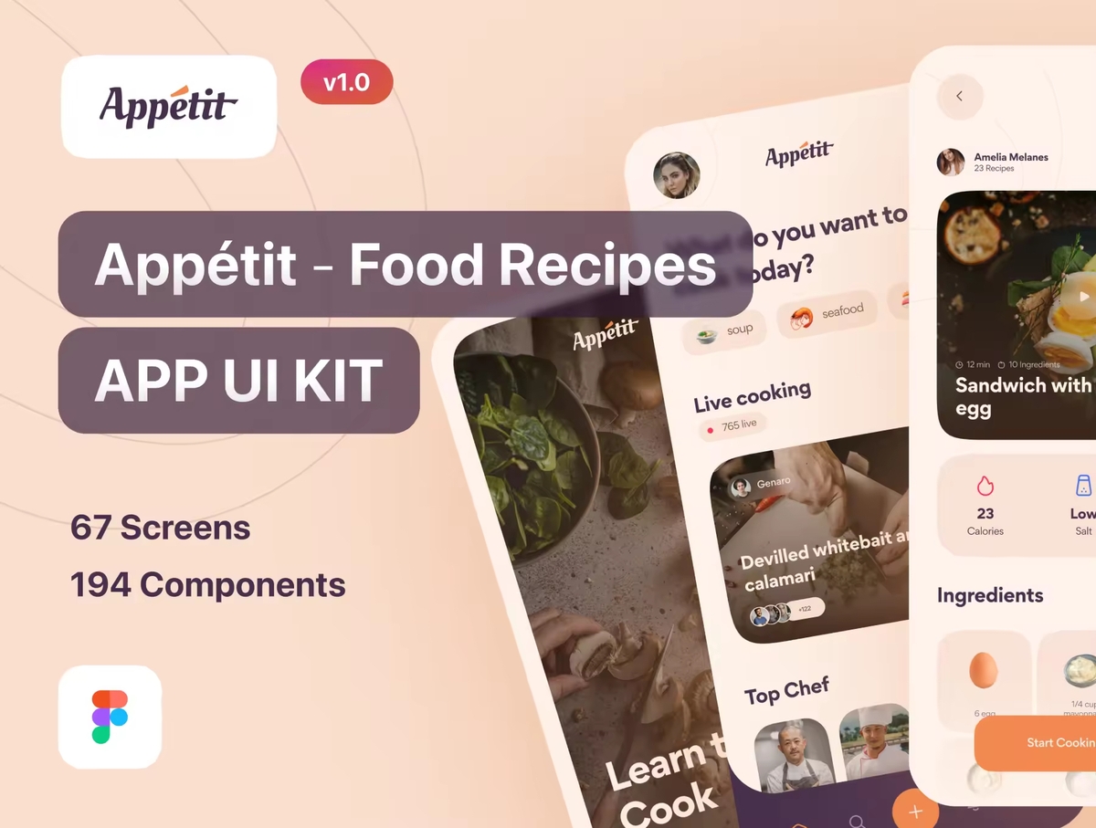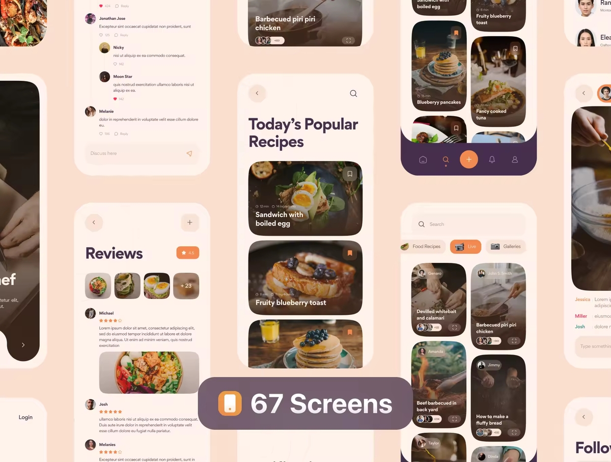 食物食谱应用 UI 套件。这个应用程序是为每个想要学习烹饪和想要了解世界各地所有食物食谱的人创建的。您还可以使用此应用程序分享您的食谱。