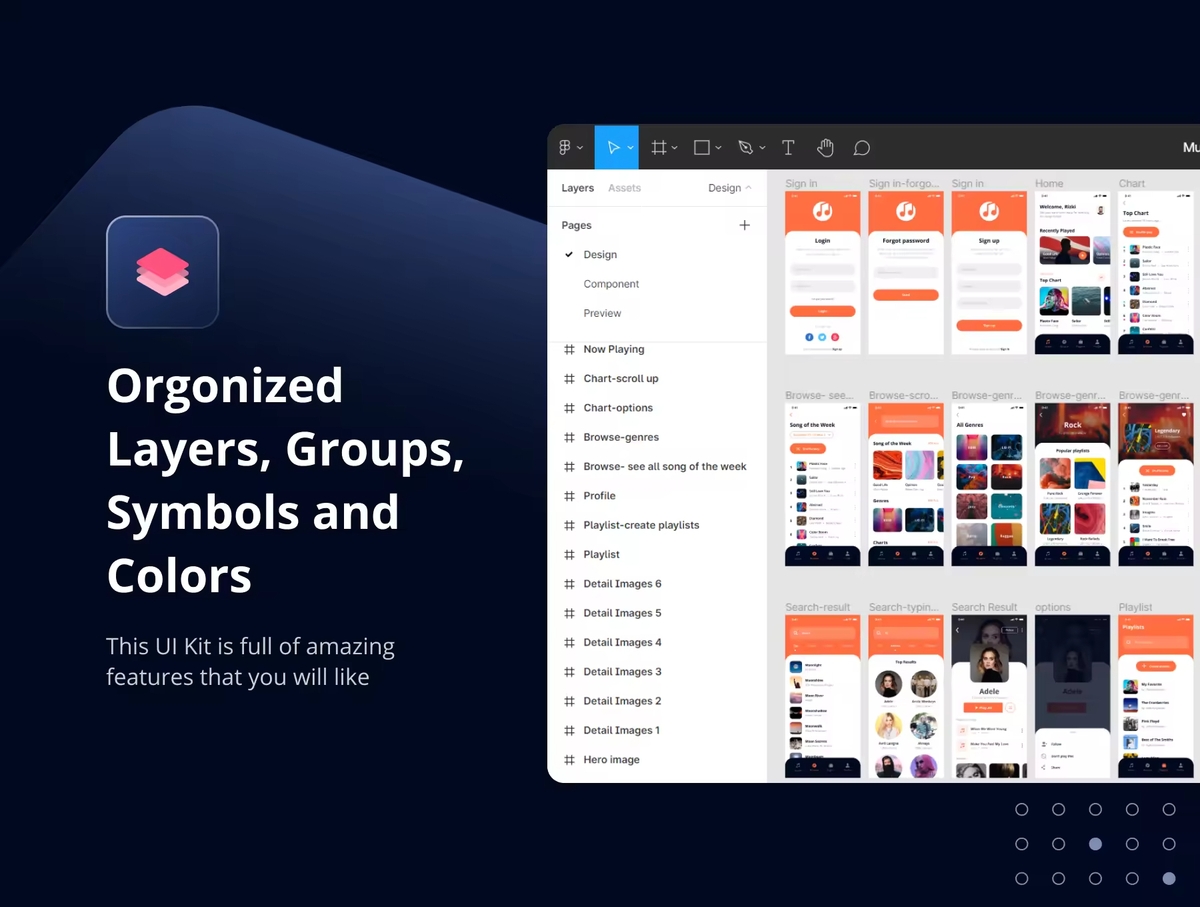 完美现代的音乐播放器App应用程序 UI 套件。这是音乐播放器应用程序的 30 屏幕应用程序概念。由于矢量形状和组织良好的图层,概念易于编辑、自定义和调整大小。