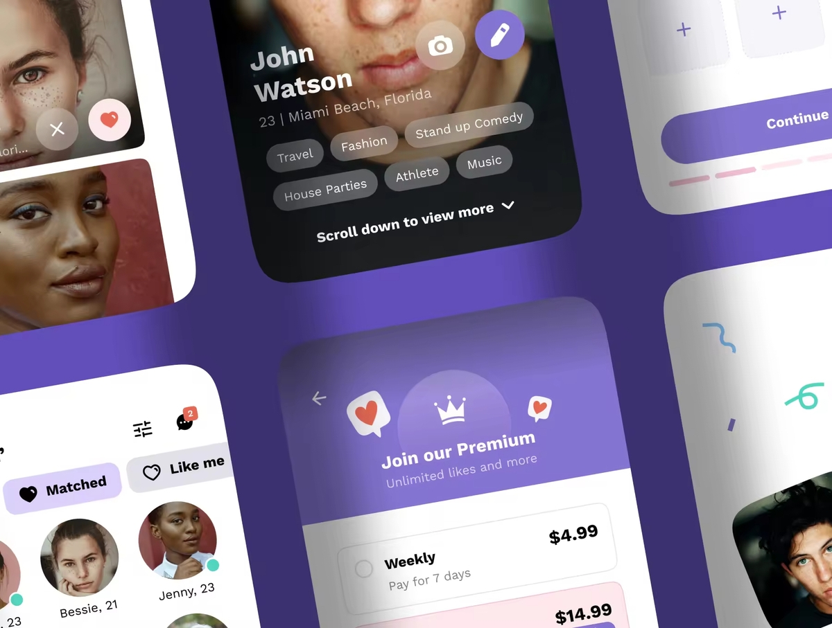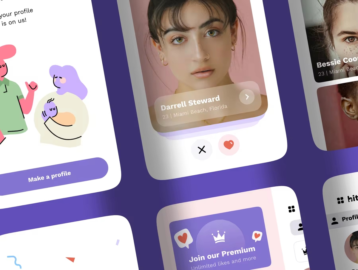 该套件包括 43 个移动屏幕,可帮助您更快地创建下一个约会应用程序项目。该套件针对每个功能设计了流量。部分类别包括:注册、首选项、个人资料、设置、滑动等。