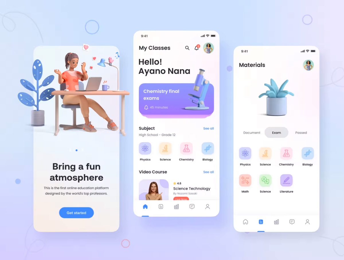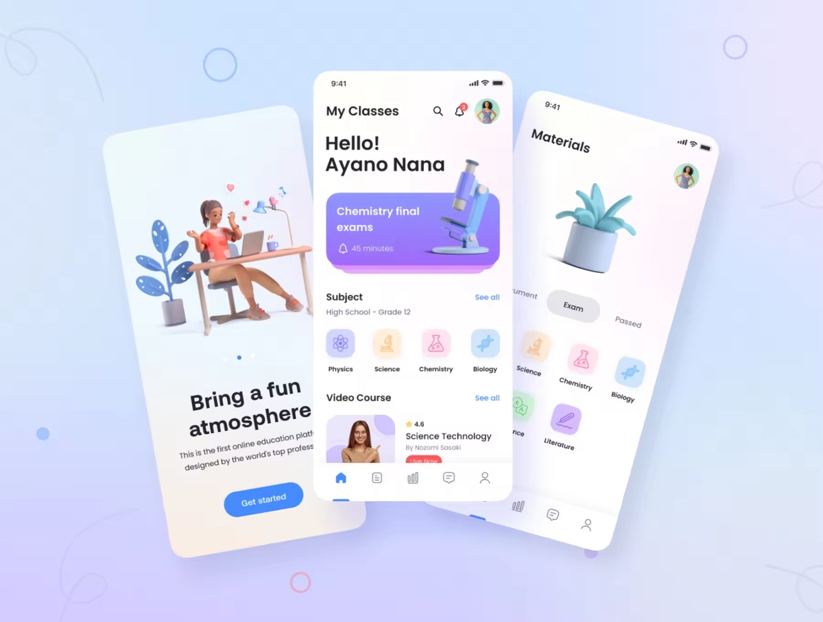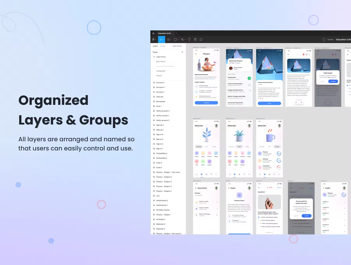 一组用于移动电子学习的用户界面,可帮助学生完成学习。所有符号和元素都易于编辑和使用。