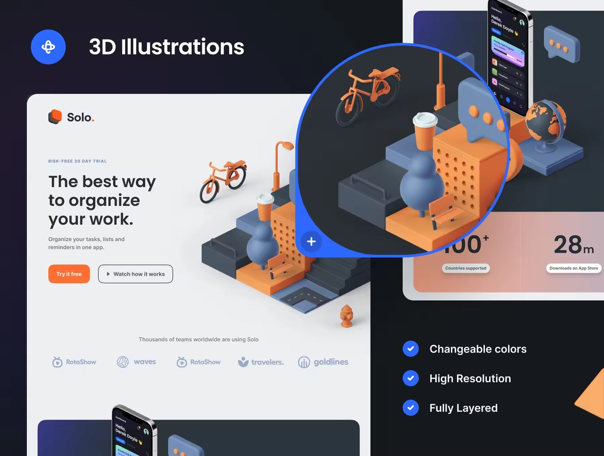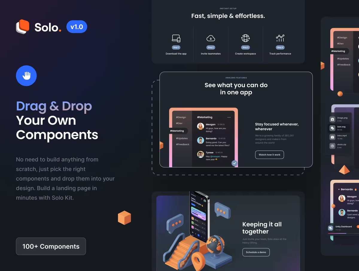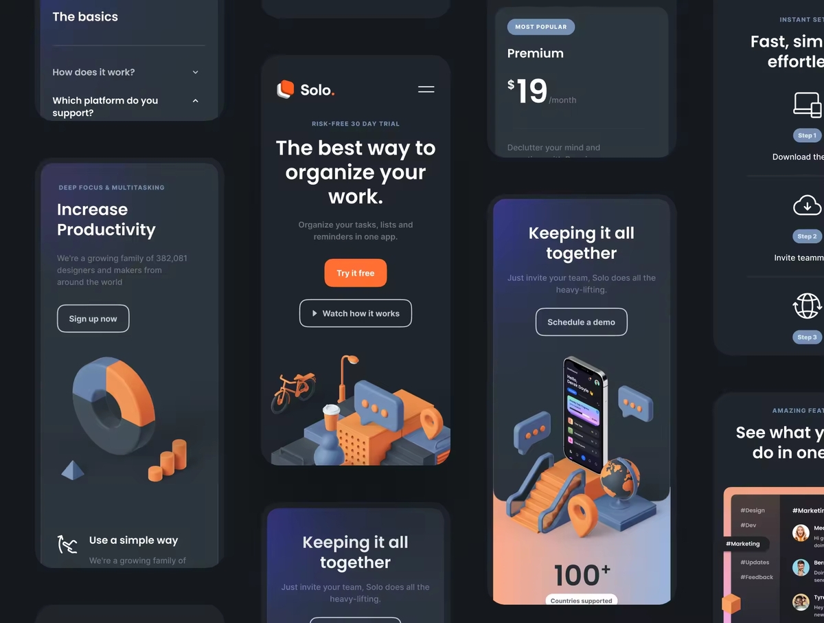 SaaS响应式设计网站着陆页模板套件,包括设计文件,可在Figma中编辑的精美3D插图以及可用于生产的HTML代码库。包括一个响应快速且完全自定义的着陆页模板,其中包含49个干净的预制屏幕。我们有意添加了许多不同的内容,以最大程度地增加布局选项的数量。拖放,混合不同部分,可在几分钟之内快速构建您的目标网页。