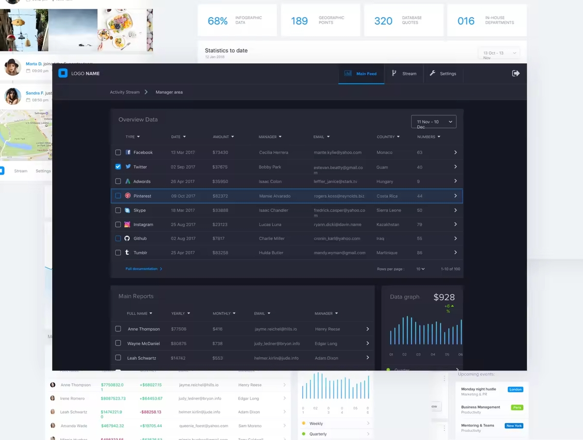 40个网站仪表板UI屏幕可帮助您为客户设计漂亮的界面。请注意,只有部分屏幕是深色屏幕。这个仪表板设计套件可以让您在几个小时内创建一流的UI体验。