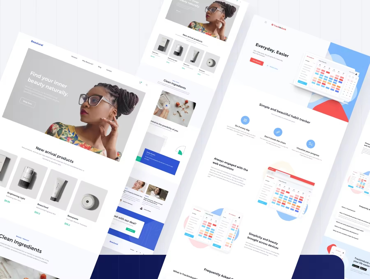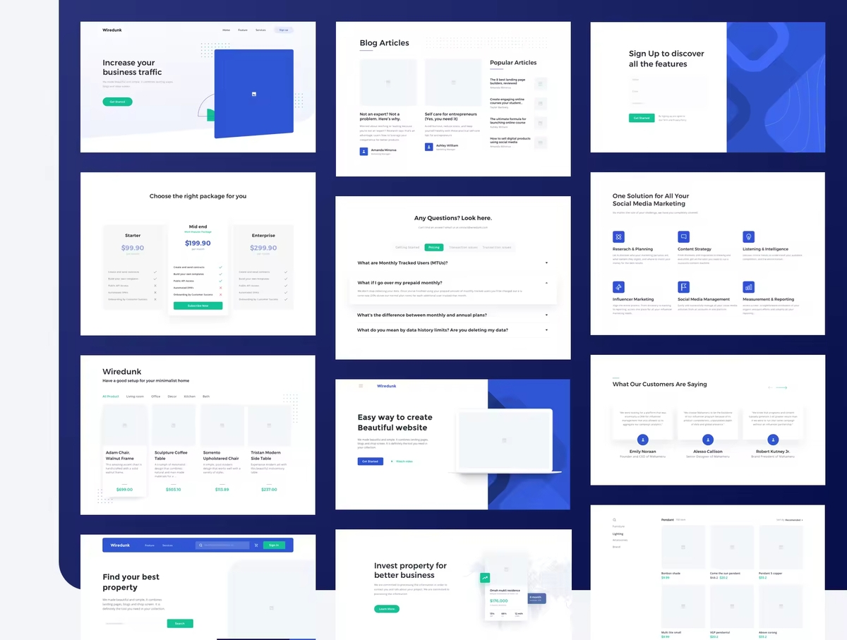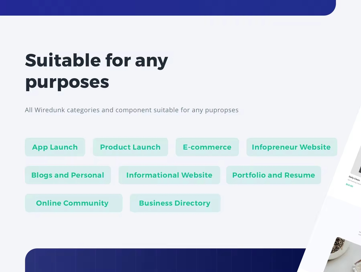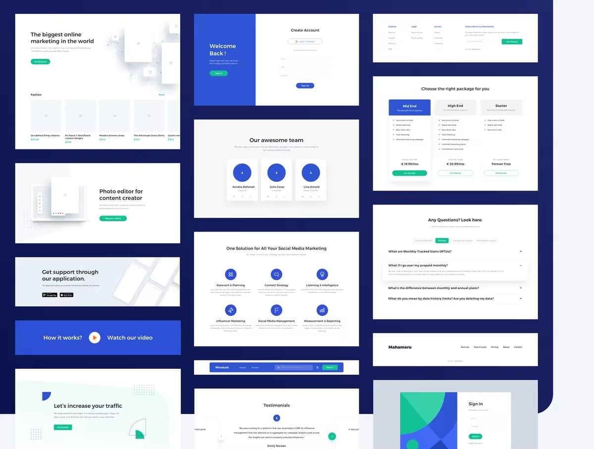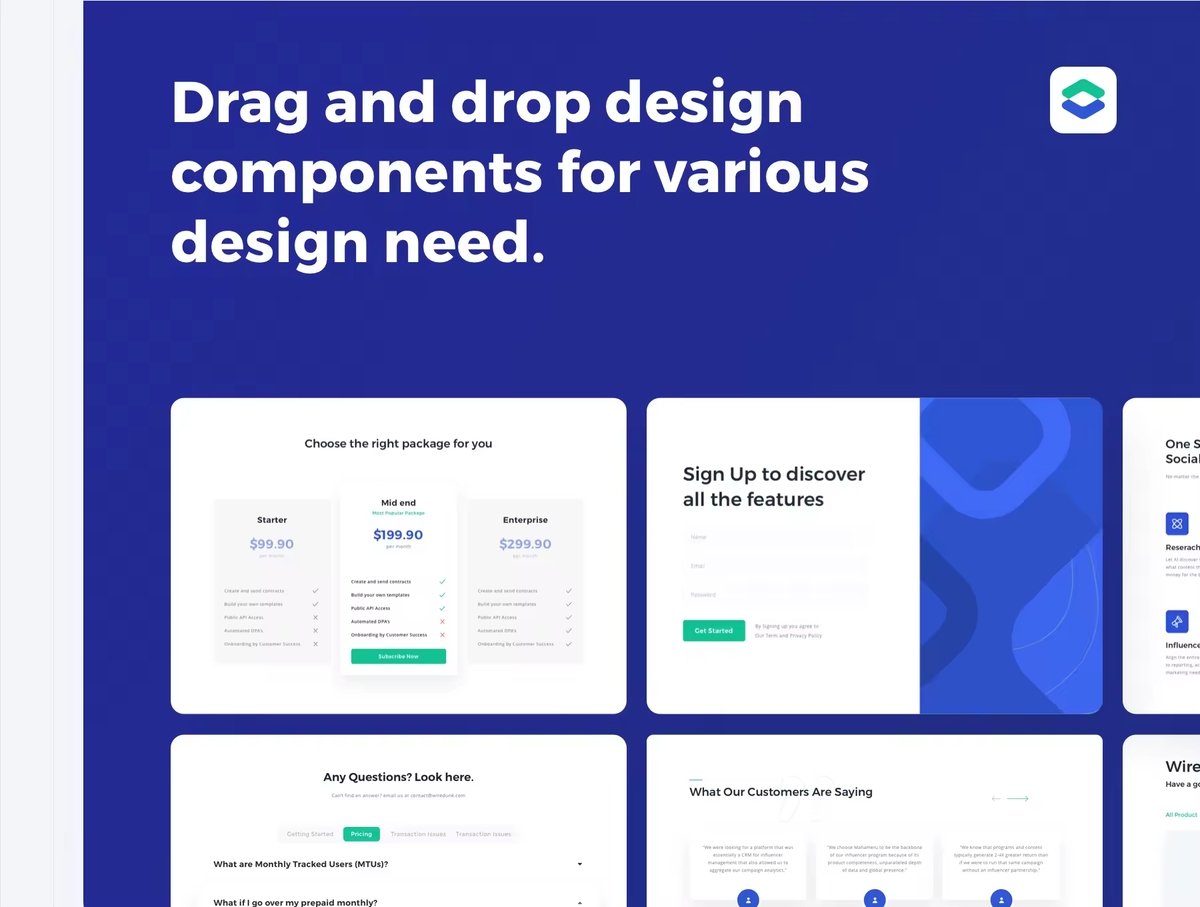 具有多个设计组件的多功能的网站着陆页设计模板 。从150多个响应式布局和组件库中,在几分钟内构建线框。