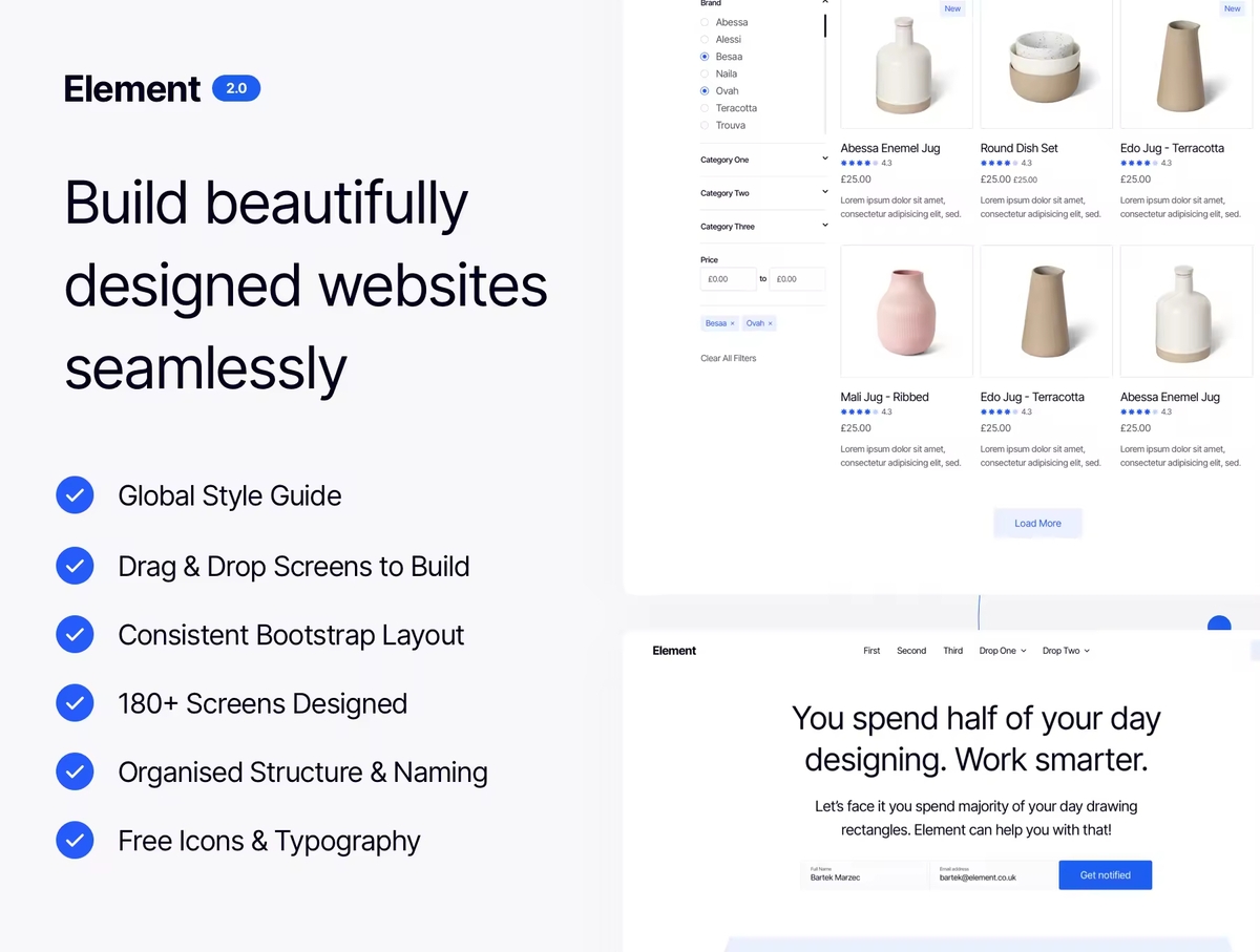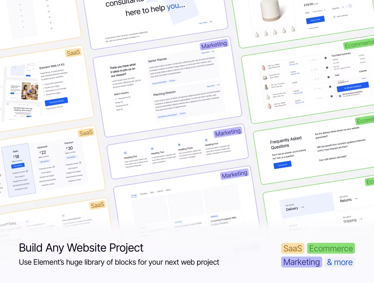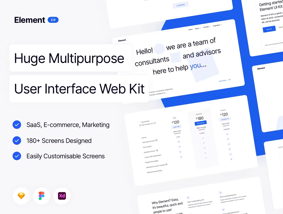 这是一个巨大的多用途用户界面 Web 工具包,旨在加快您的设计工作流程,而不会影响视觉设计或用户体验。借助易于自定义的样式指南,您只需单击几下即可立即将自定义更改应用到所有屏幕!构建涵盖 SaaS、电子商务、营销和其他流行网站类别的项目。这是任何设计师、小型工作室或忙碌的企业家工具包的完美补充。使用此套件来增强您的下一个 Web 项目并构建一些惊人的东西!你的想象力是唯一的限制。