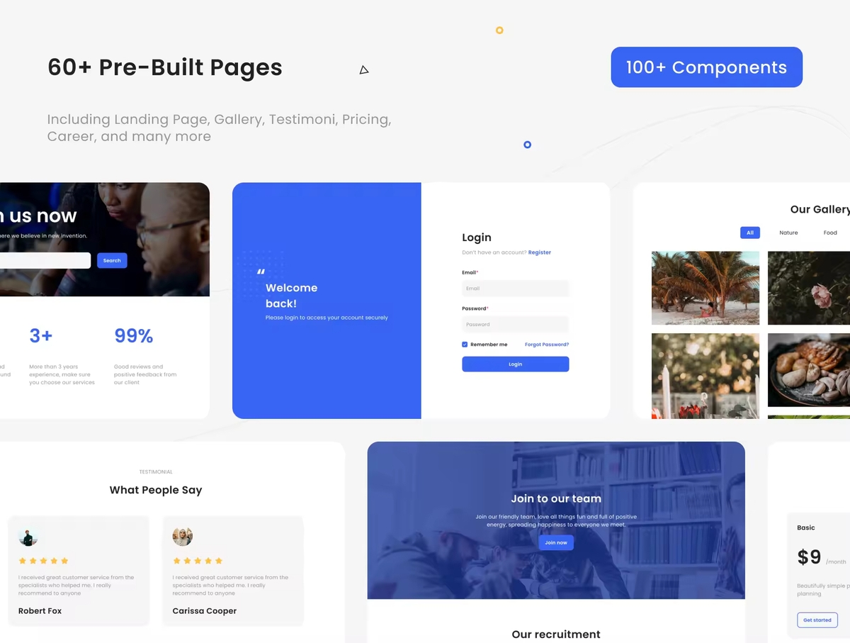 这是一个干净且简约的着陆页UI 套件,针对各种桌面用例。具有广泛多样的布局和部分,可帮助您为个人和商业项目构建完整且独特的网站。提供了一种现代设计,感觉新鲜和专业。