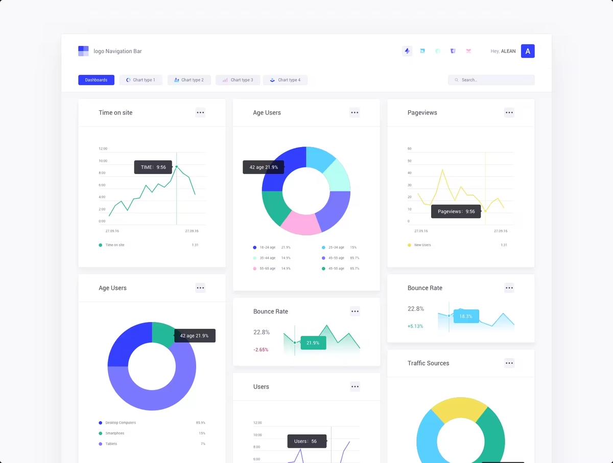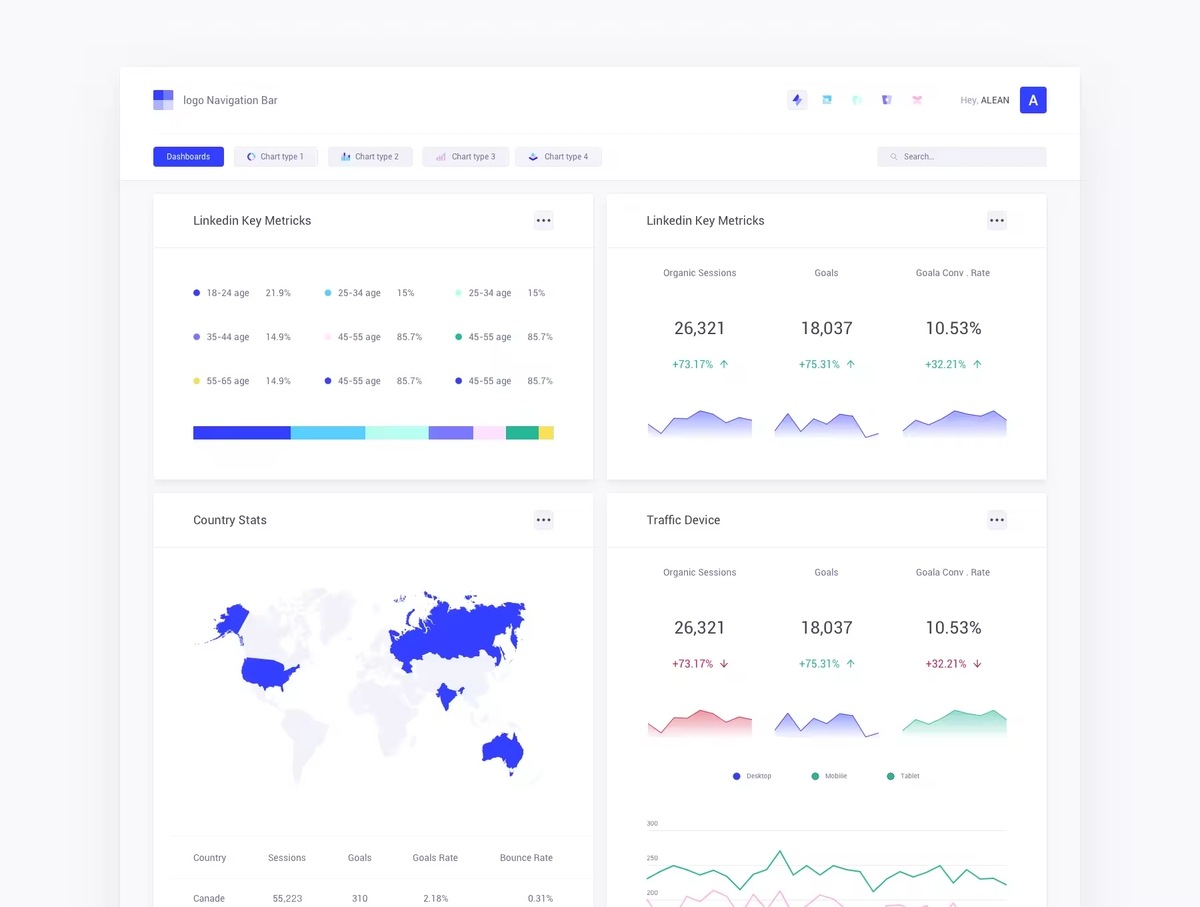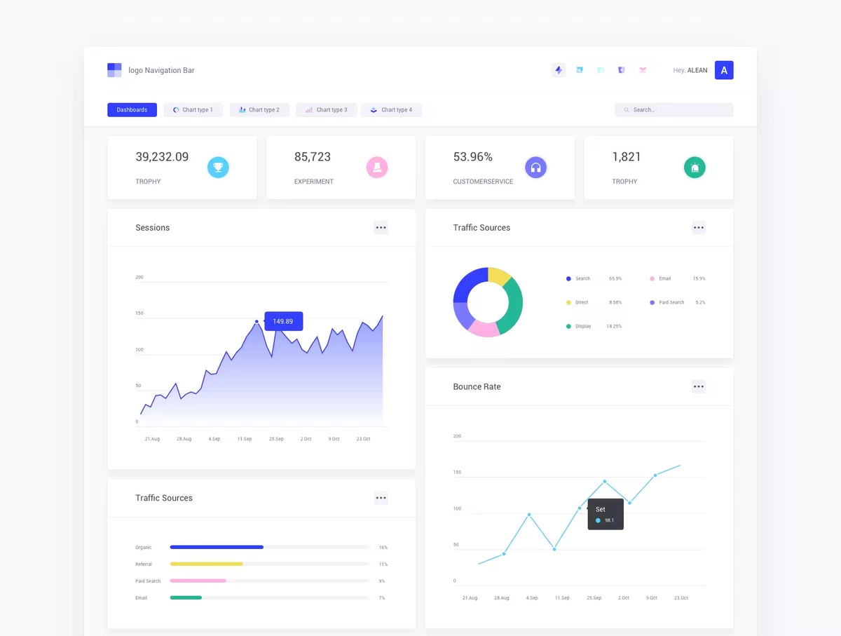 数据可视化仪表板UI套件,白色模式和深色模式,该套件可用于数字货币,金融,股票,数据后端管理,电子商务等,以构建仪表板。惊人的工作来提高您的生产力。