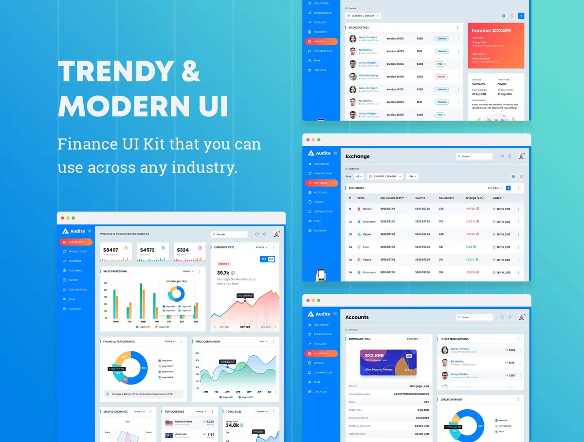 这是一个现代,干净且非常详细的UI套件。使用宽度为1440px的12列Bootstrap网格为您的未来项目设计了20多个漂亮的屏幕。另外,您可以使用一组独特的UI工具包组件来构建自己的金融和银行产品。所有符号和对象都是基于矢量的,并且易于编辑。使用了免费的Google字体以及可以方便替换的免费图标。共有20多种布局、符号、文本样式,它将帮助您为正在处理项目的财务和银行仪表板创建原型。使用形状图层创建,可免费使用Google字体和矢量图形图像。