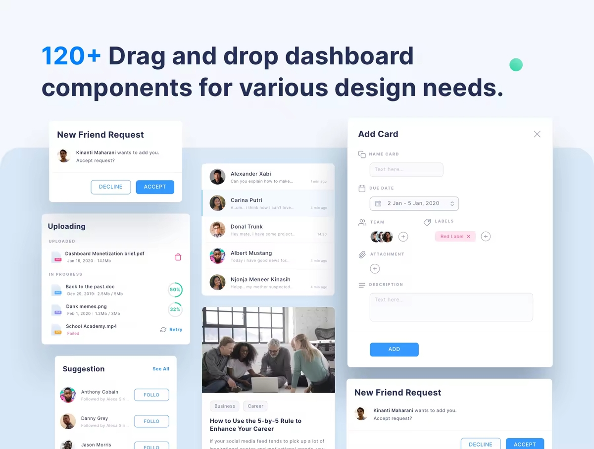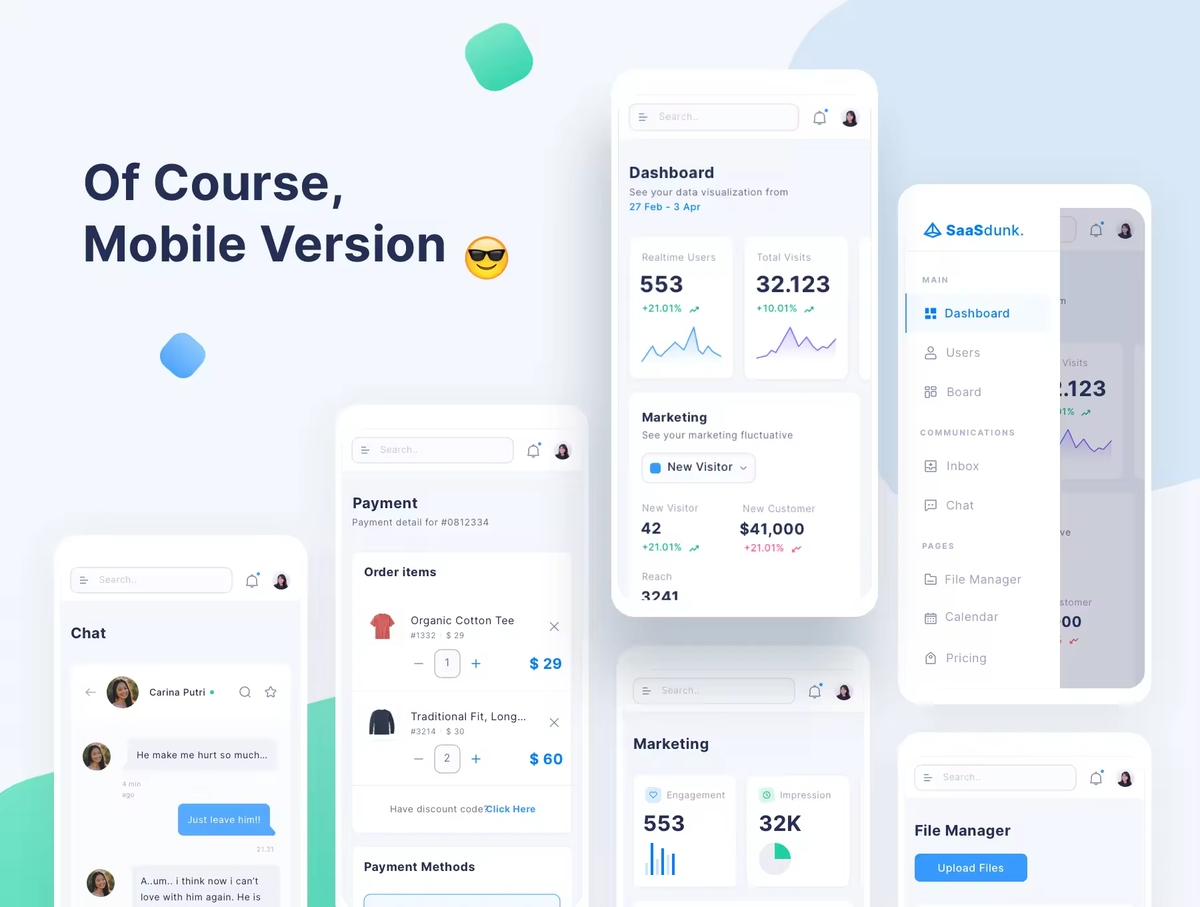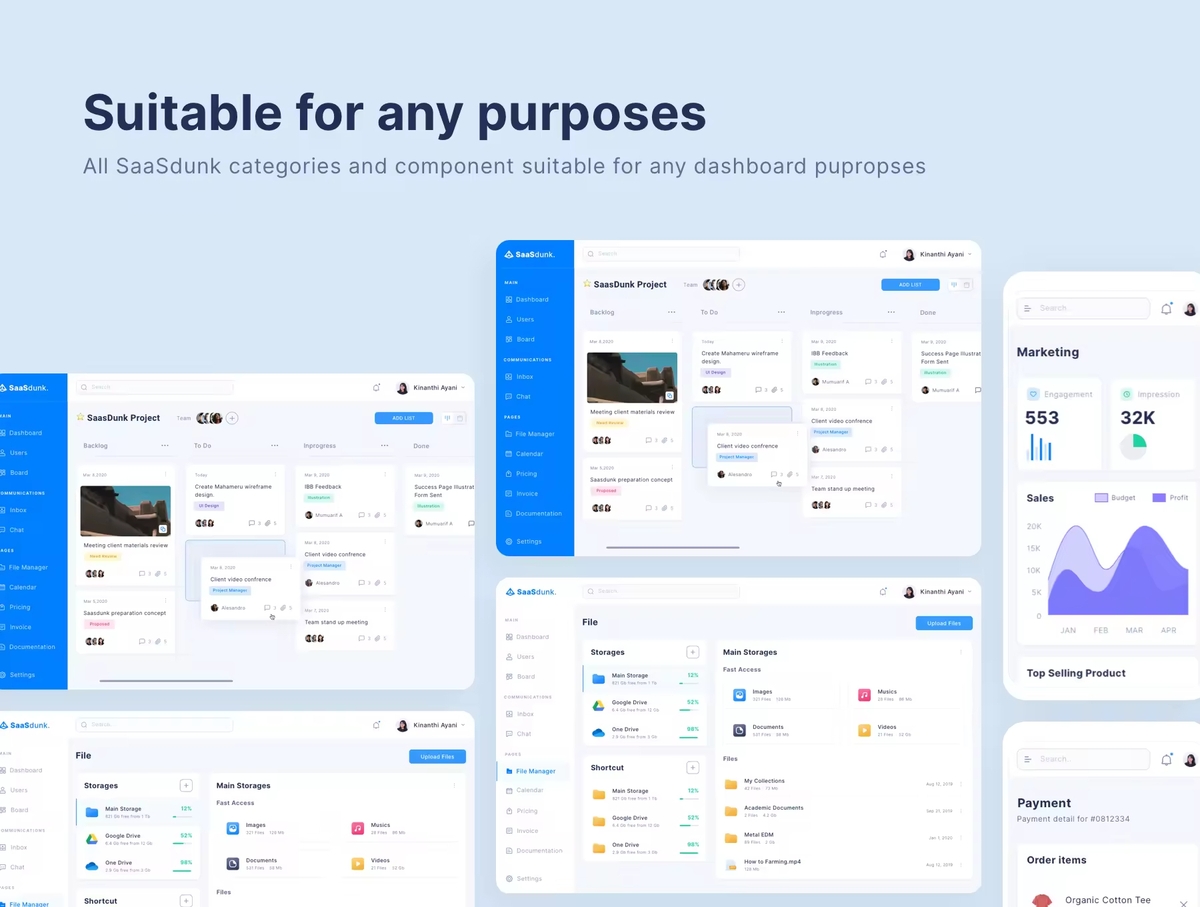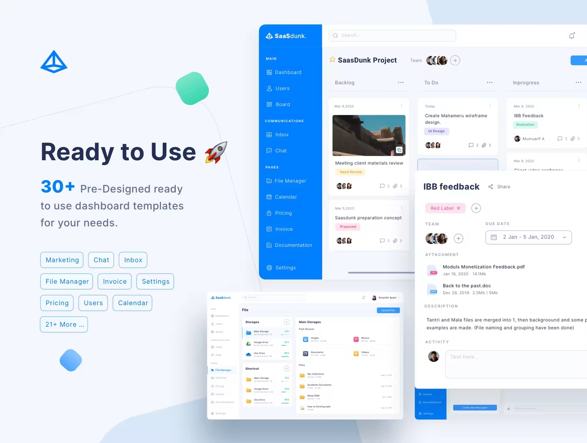 高级SaaS仪表板设计系统UI套件,在几分钟之内即可建立仪表板,其中包括:120+响应组件和30+预先设计的即用页面。