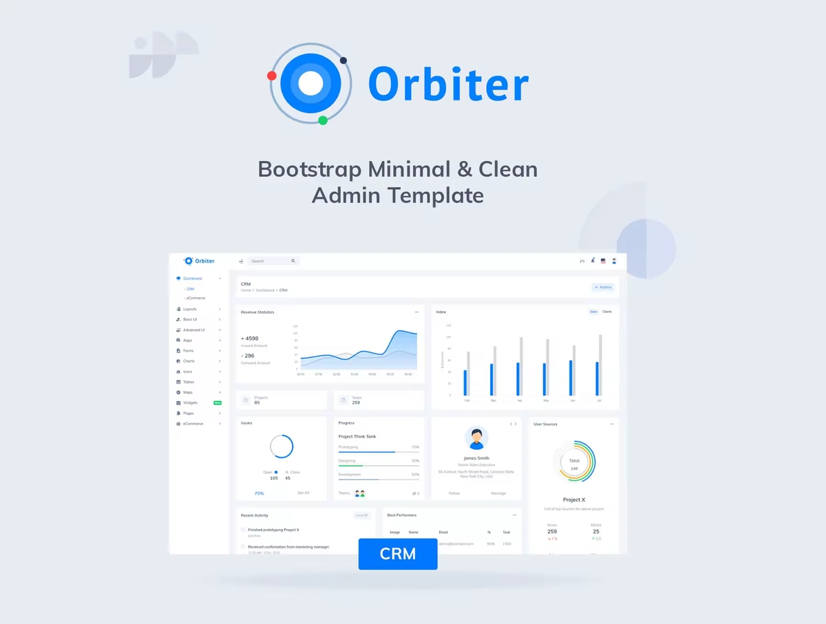 这是简约且干净的Bootstrap网站后台管理仪表板设计模板。它使用最新的Bootstrap版本和最新的Laravel版本构建,同时牢记灵活性。它带有在线文档,使开发人员更容易。它还具有针对CRM,电子商务,医院,加密和学校的专用超轻量级演示。