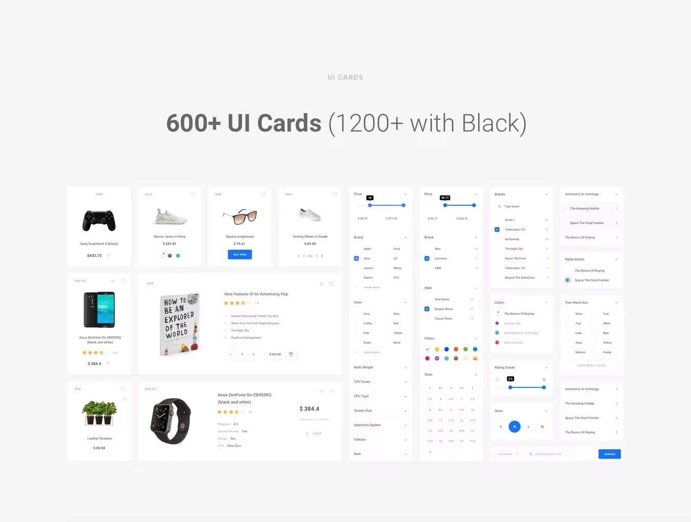 黑白双色版本的网站UI设计套件,其中包括1200+个UI卡和7个类别中的200+个页面,以及100+个示例页面,使您的设计过程超级轻松,快速。拖放卡片,自定义,替换图像和文本。所有卡片均基于Bootstrap网格1170 px并易于组合在一起。