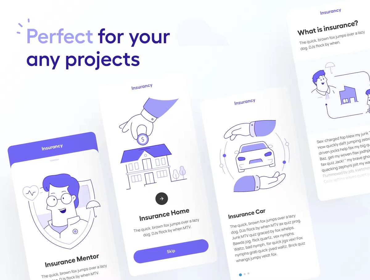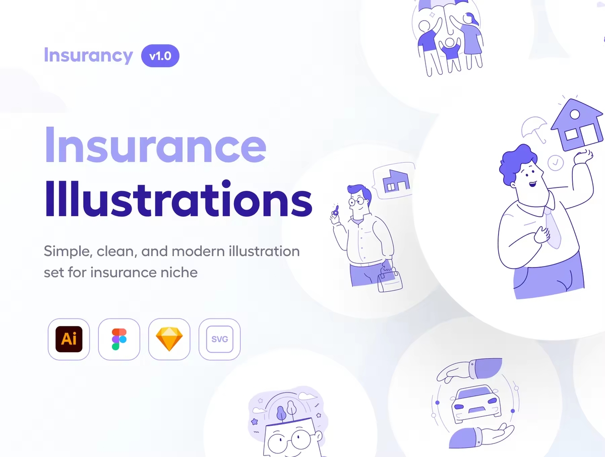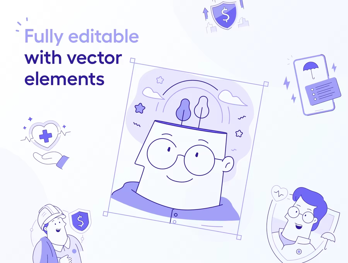 这是一套适用于保险和金融科技领域的定制插画。制作完全分层和分离的矢量对象。非常适合 UI/UX 设计、演示、广告等。100% 矢量可编辑和可扩展。颜色很容易改变。每个插画都经过组织、命名且非常易于使用。