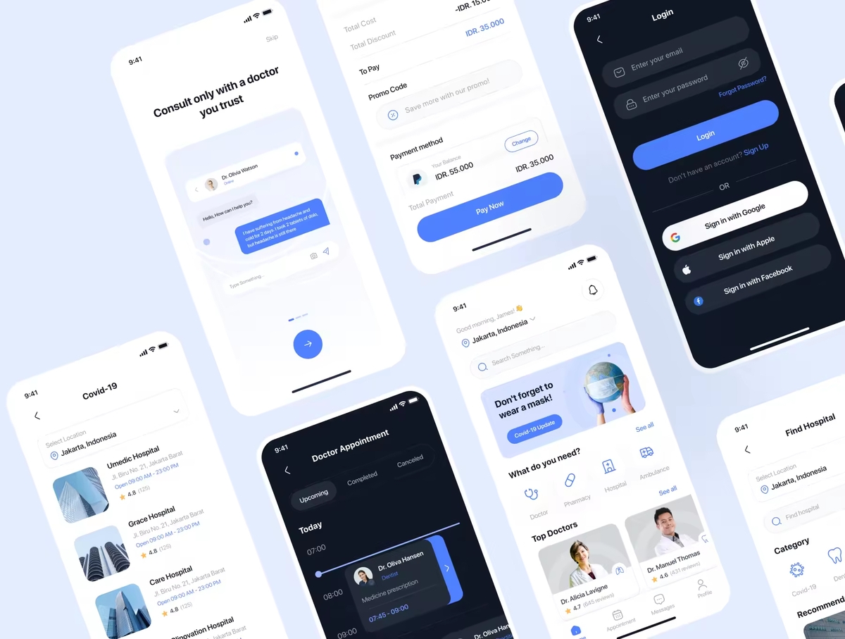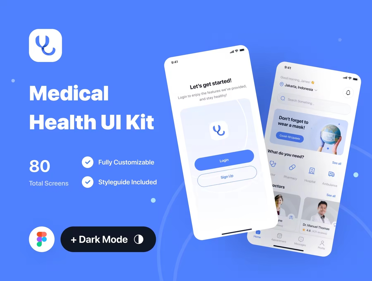 这是一款高级医疗应用 UI 套件,由 80个像素完美的屏幕组成,易于在 Figma 中使用。该套件很容易根据您的喜好完全自定义,它利用了 Figma 的所有功能,包括全局颜色、字体样式、动态组件和变体。提供明暗主题。使用这些整洁、干净、现代且出色的设计屏幕开发您的移动应用程序。