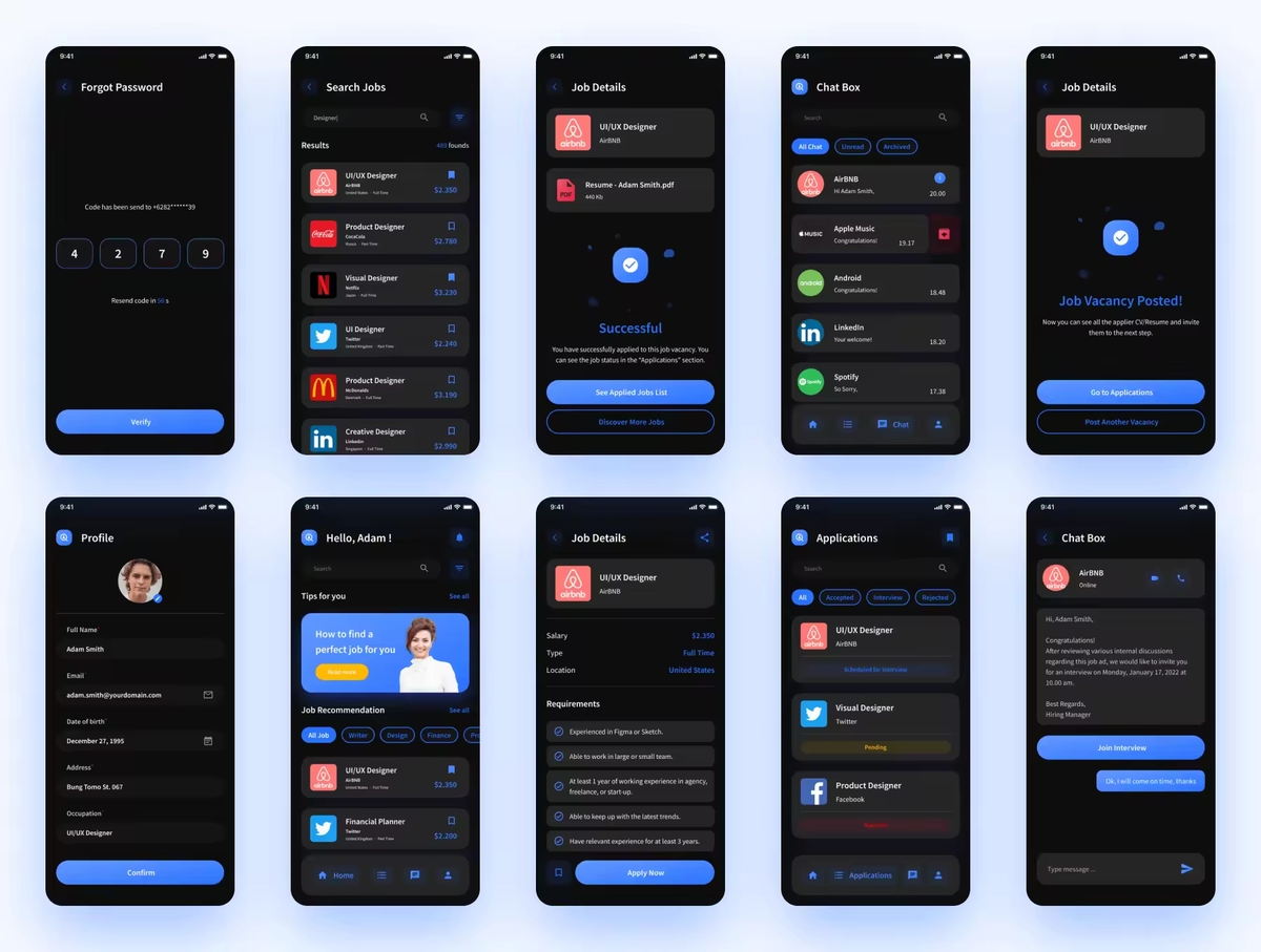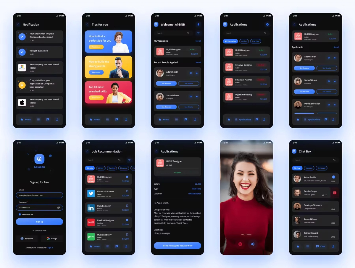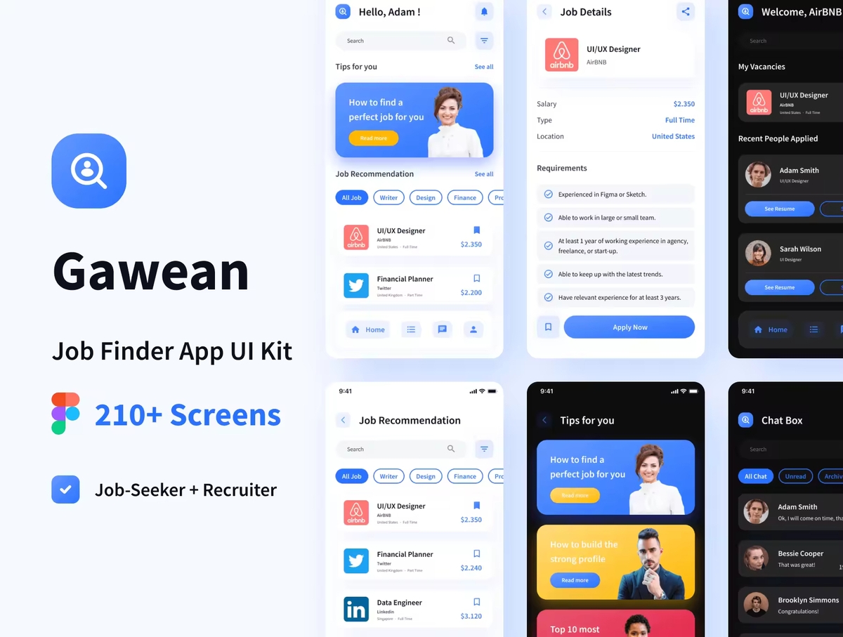 这是一款高级和高质量的求职移动应用程序 UI 套件,具有 214 个屏幕,可高度自定义。设计可在 Figma 中获得。以时尚和现代的方式设计,所有层次都组织良好。此外,应用程序设计尤其是figma已经设计为全自动布局,所以如果你想删除或添加一些部分,它是非常自适应的。如果您不熟悉自动布局,可以通过右键单击图层并选择删除自动布局来关闭它。