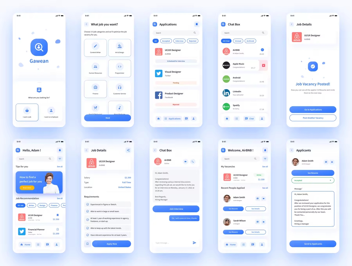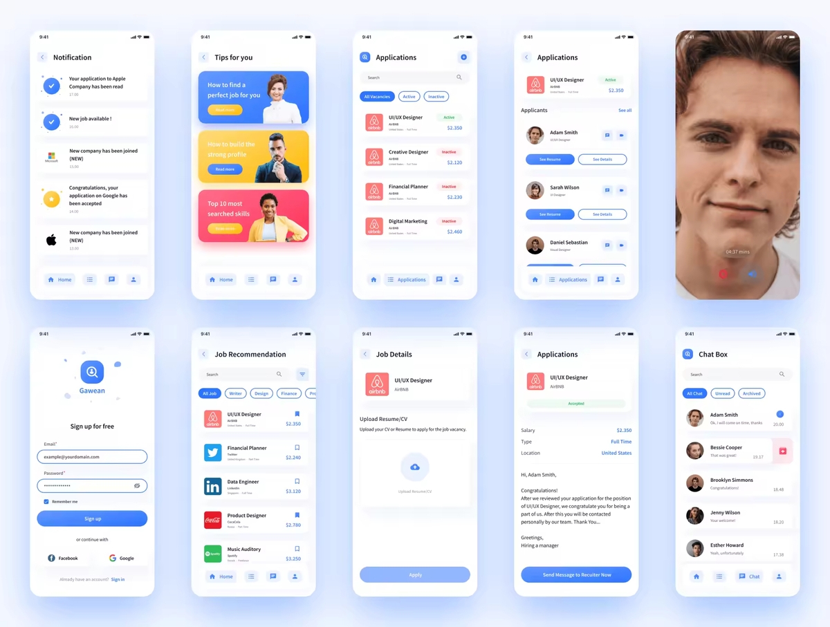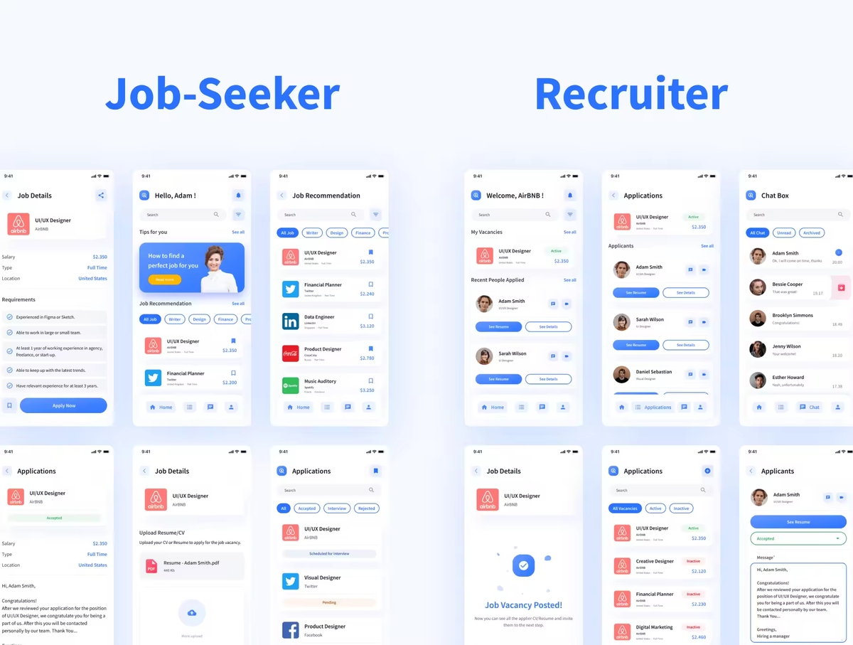 这是一款高级和高质量的求职移动应用程序 UI 套件,具有 214 个屏幕,可高度自定义。设计可在 Figma 中获得。以时尚和现代的方式设计,所有层次都组织良好。此外,应用程序设计尤其是figma已经设计为全自动布局,所以如果你想删除或添加一些部分,它是非常自适应的。如果您不熟悉自动布局,可以通过右键单击图层并选择删除自动布局来关闭它。