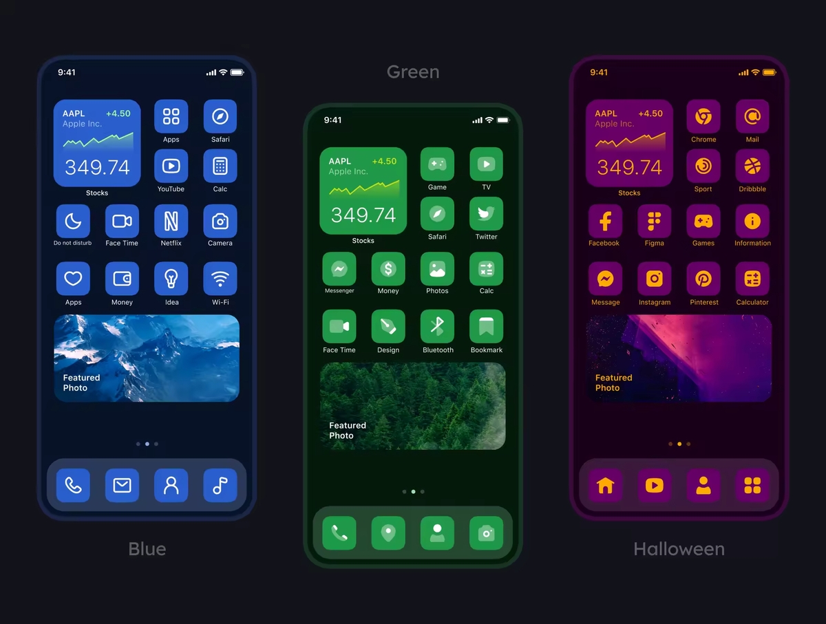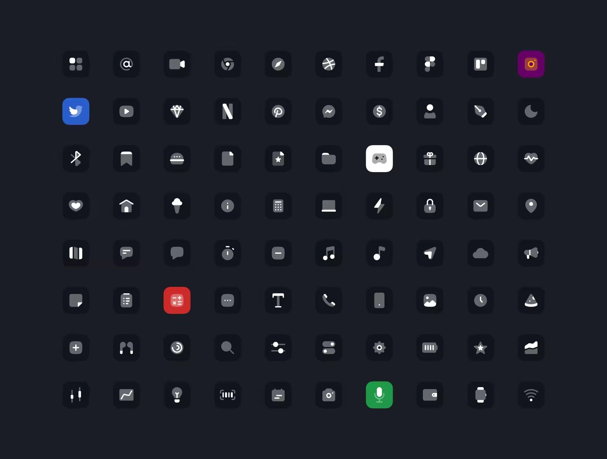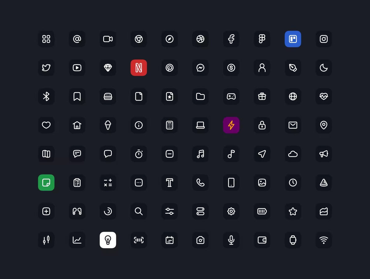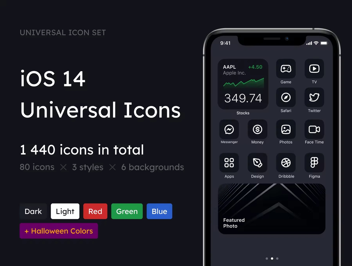 iOS系统通用App应用PNG图标,240个独特图标(线条,实线,双色调)| 6个背景,背景:深色,浅色,红色,绿色,蓝色,万圣节。1024×1024像素。