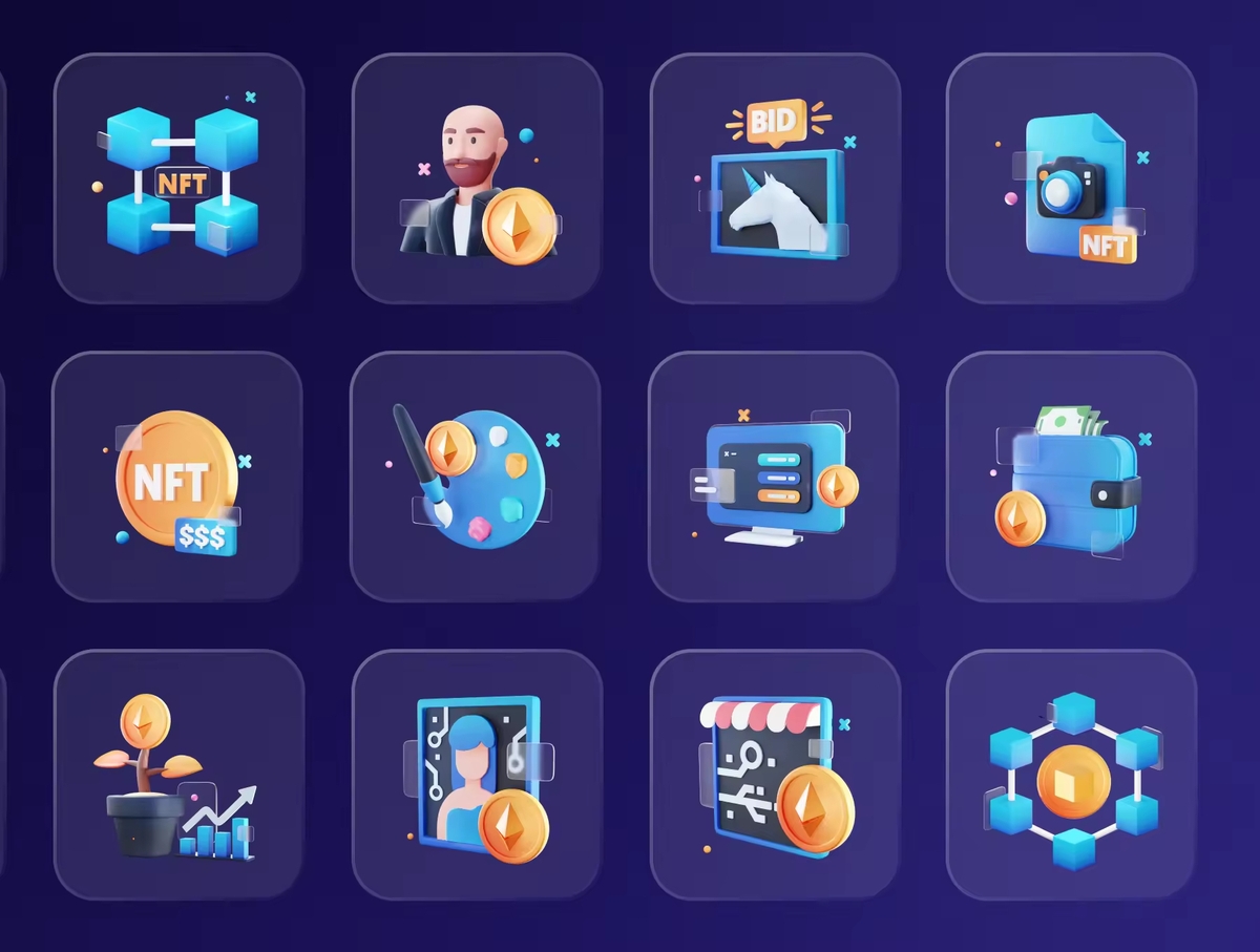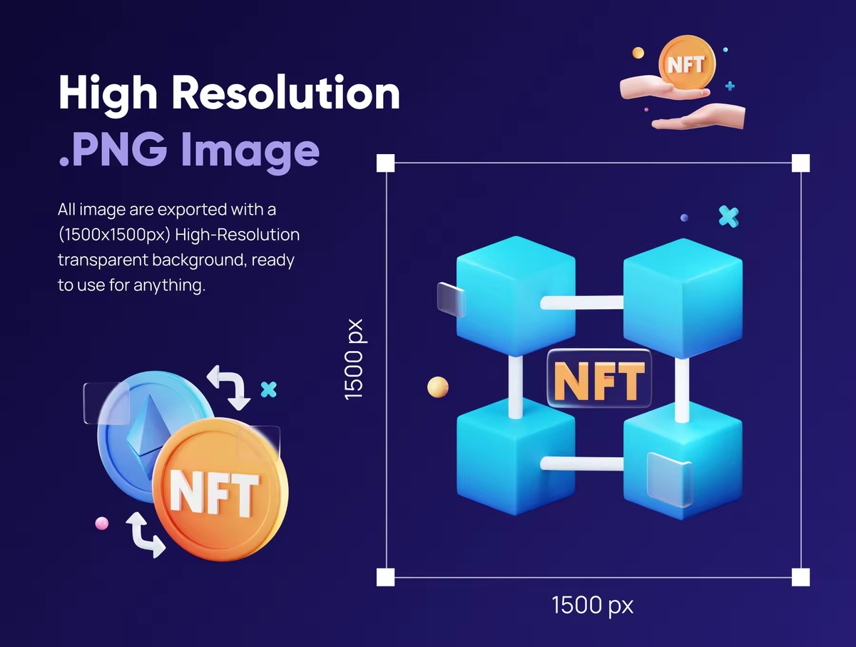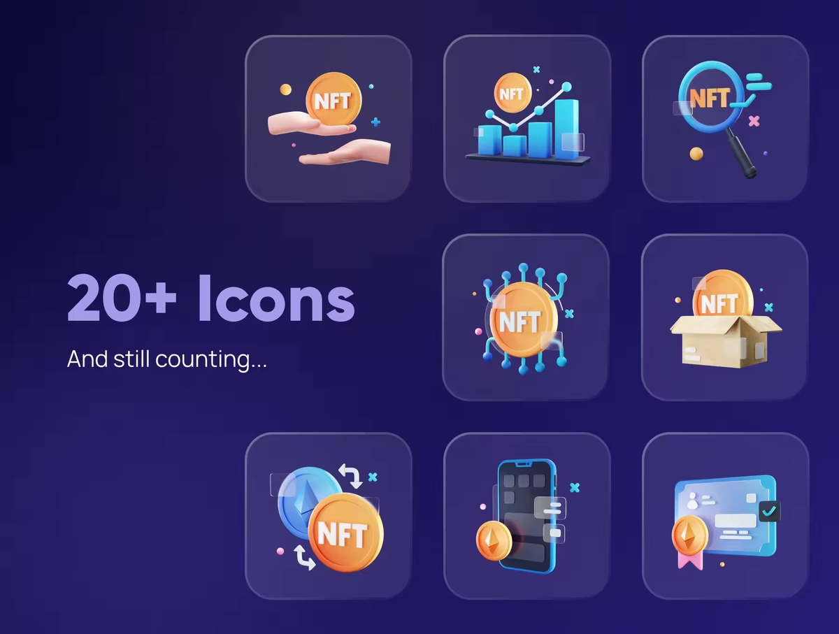 这是一组自定义 3D 图标,适用于任何 NFT 和货币相关行业。使用 3D 图标让您的下一个产品和项目更加惊艳。适用于:NFT、加密货币、区块链、金融科技、投资等。