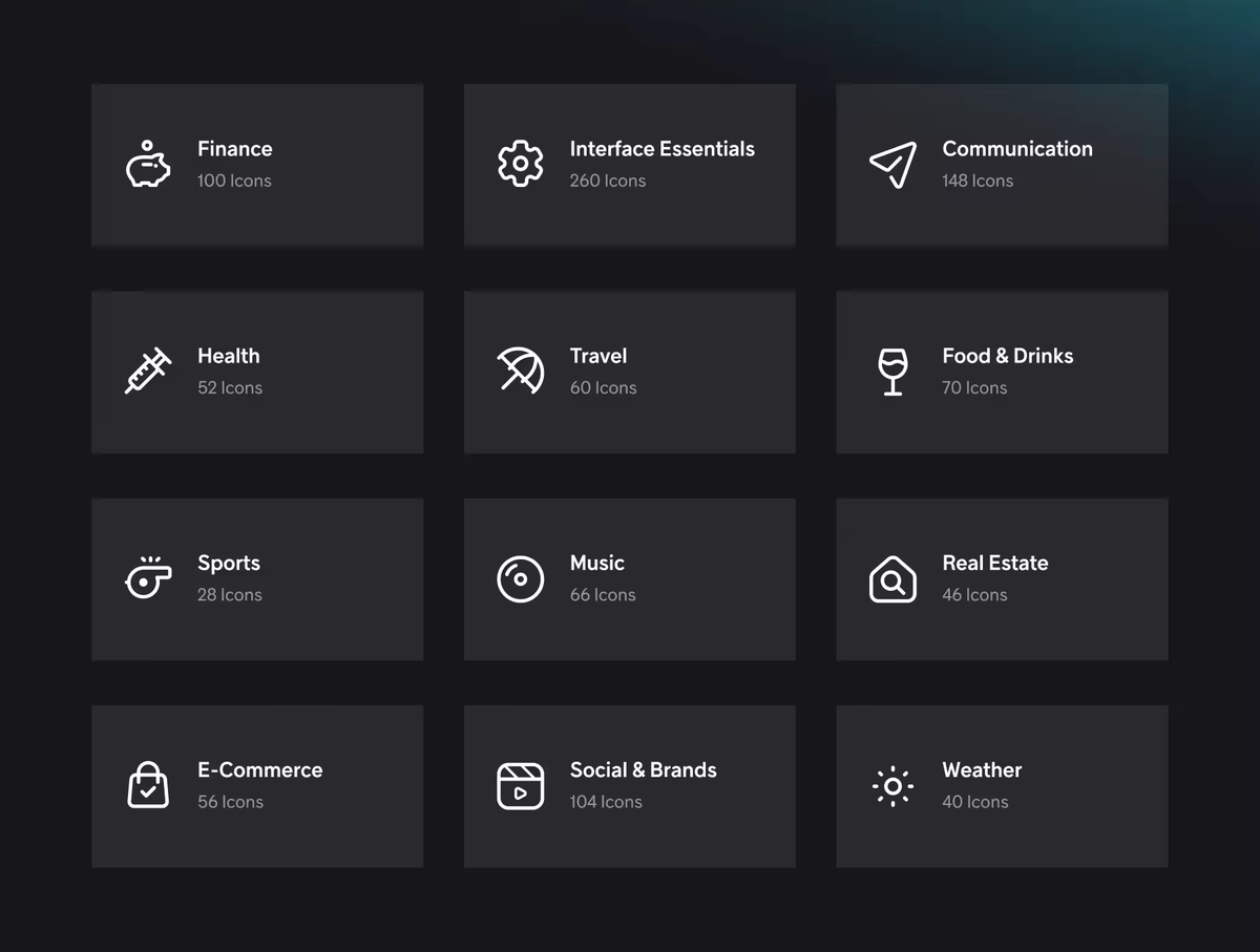 1000 多个专业网站和应用程序的高质量图标 – 可用于您的所有项目。一个涵盖所有类别并不断开发的通用图标包。类别:设备与通讯、金融、电子商务、健康、旅行、食品和饮料-、天气、运动、音乐、房地产、社交媒体和品牌。