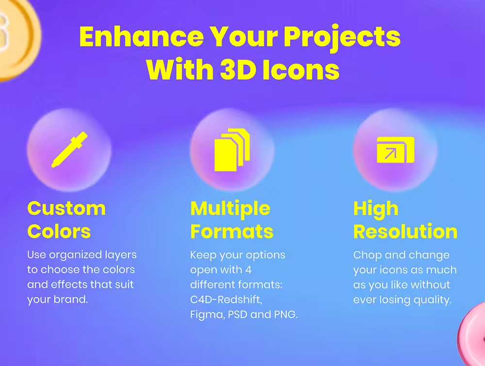 使用此 3D Web 图标集创建令人惊叹的登录页面、演示文稿等。这些图标是完全可定制的。选择适合您品牌的颜色和效果。你甚至可以选择你的相机角度。在前视图或等轴视图之间进行选择。