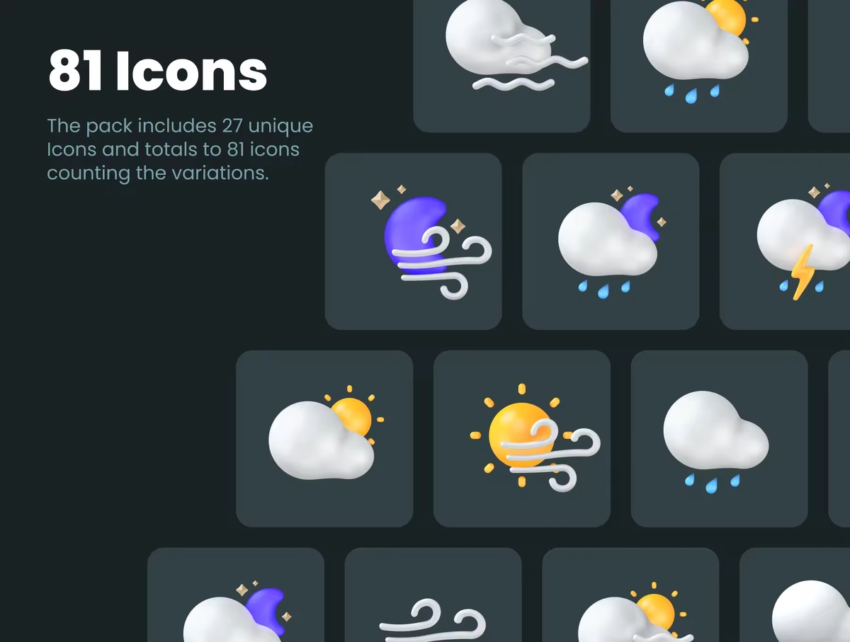 这是一组适用于任何天气应用的自定义 3D 图标。使用这些手工制作的图标创建令人惊叹的独特项目。