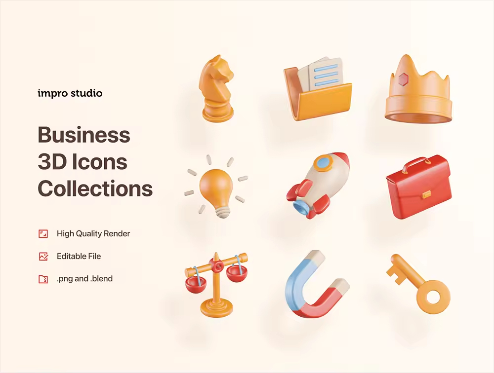 使用我们精心设计的商业 3D 图标创建很棒的项目。使用这些图标,让您的登录页面、应用程序、演示文稿看起来更专业。使用 .blend .png 和 .obj 轻松定制。