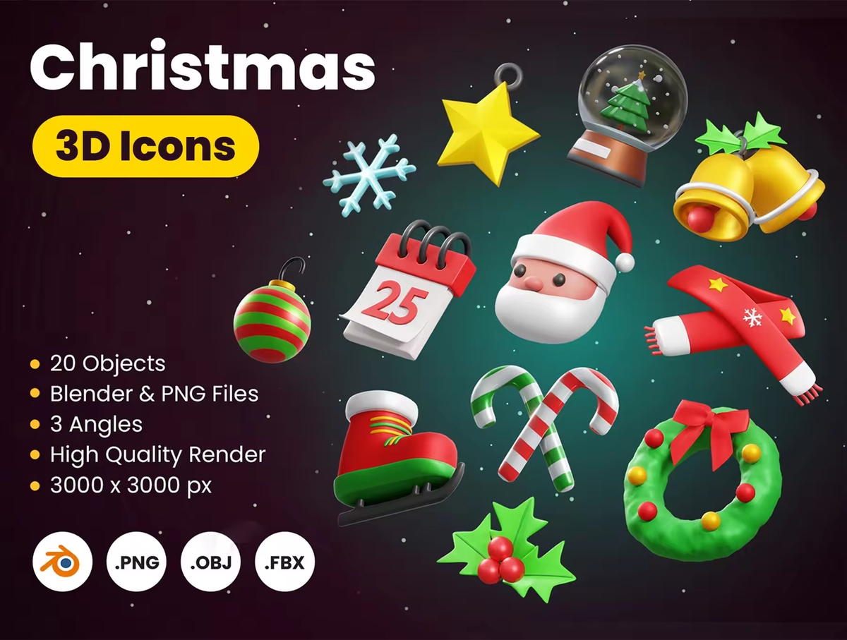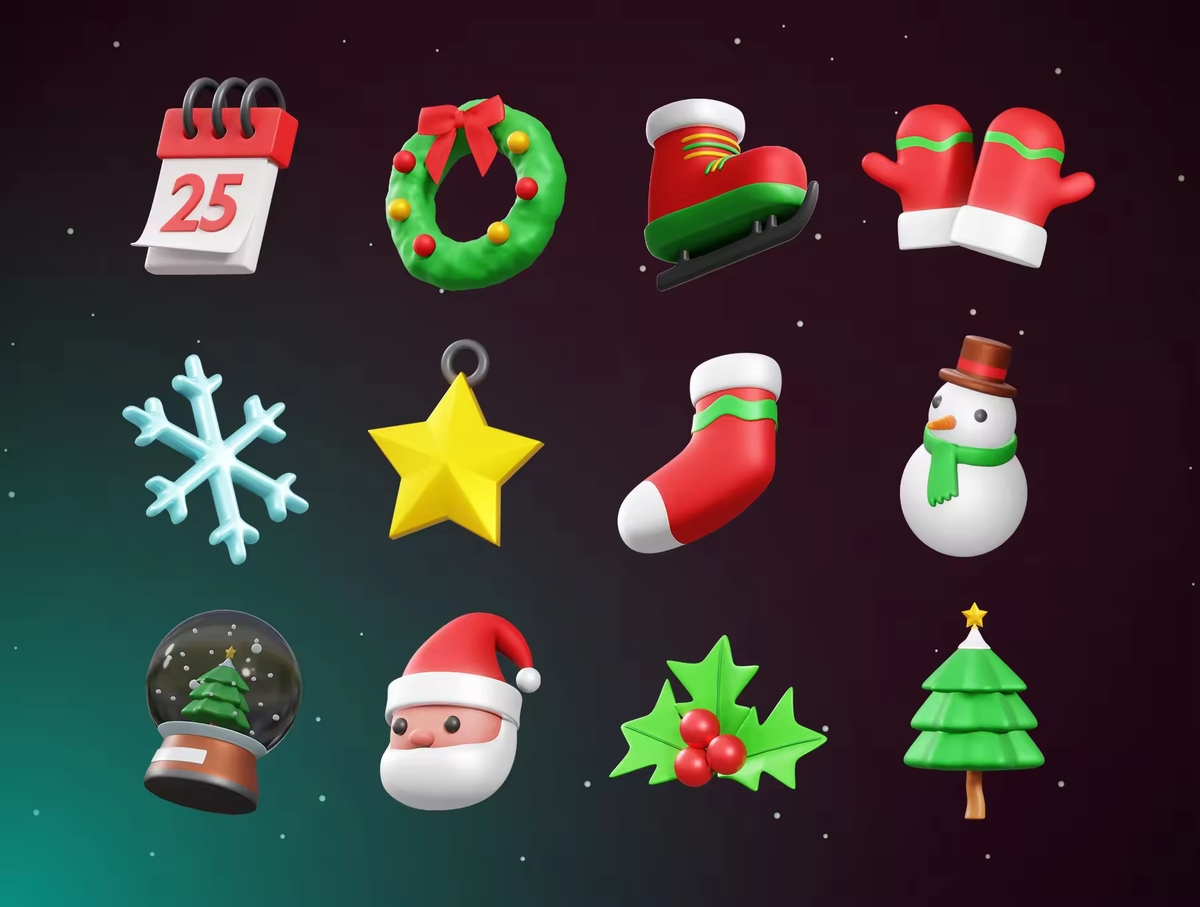 圣诞节 3D 图标可用于设计需求、动画、网页设计、UI 设计、演示幻灯片、海报等。非常适合完成您的设计。