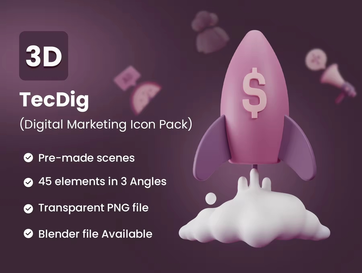 这是用于数字营销和技术领域的高级 3D图标包。使用项目中的图标来构建令人惊叹的布局、网站 UI、移动应用程序 UI、演示文稿。通过将不同的图标组合在一起来创建视觉上吸引人的场景。