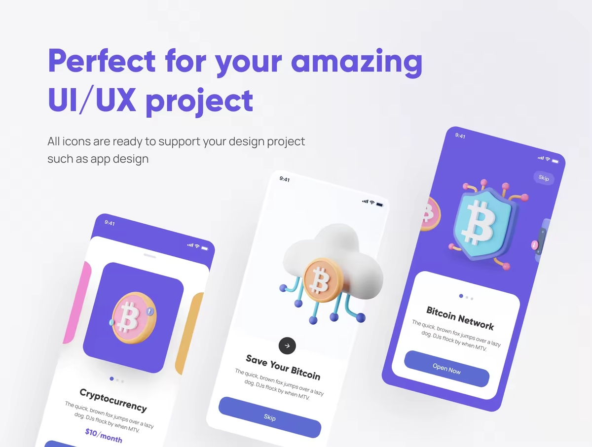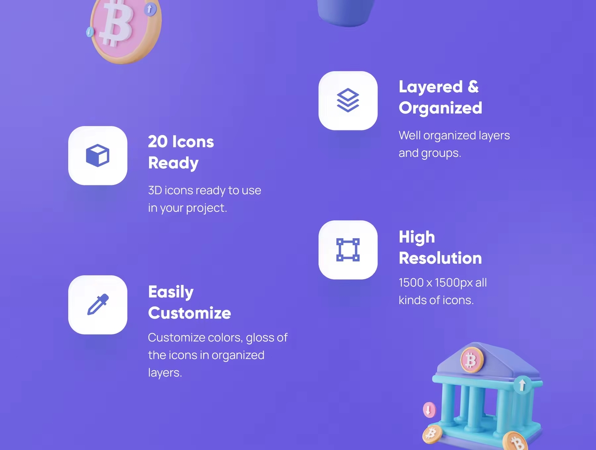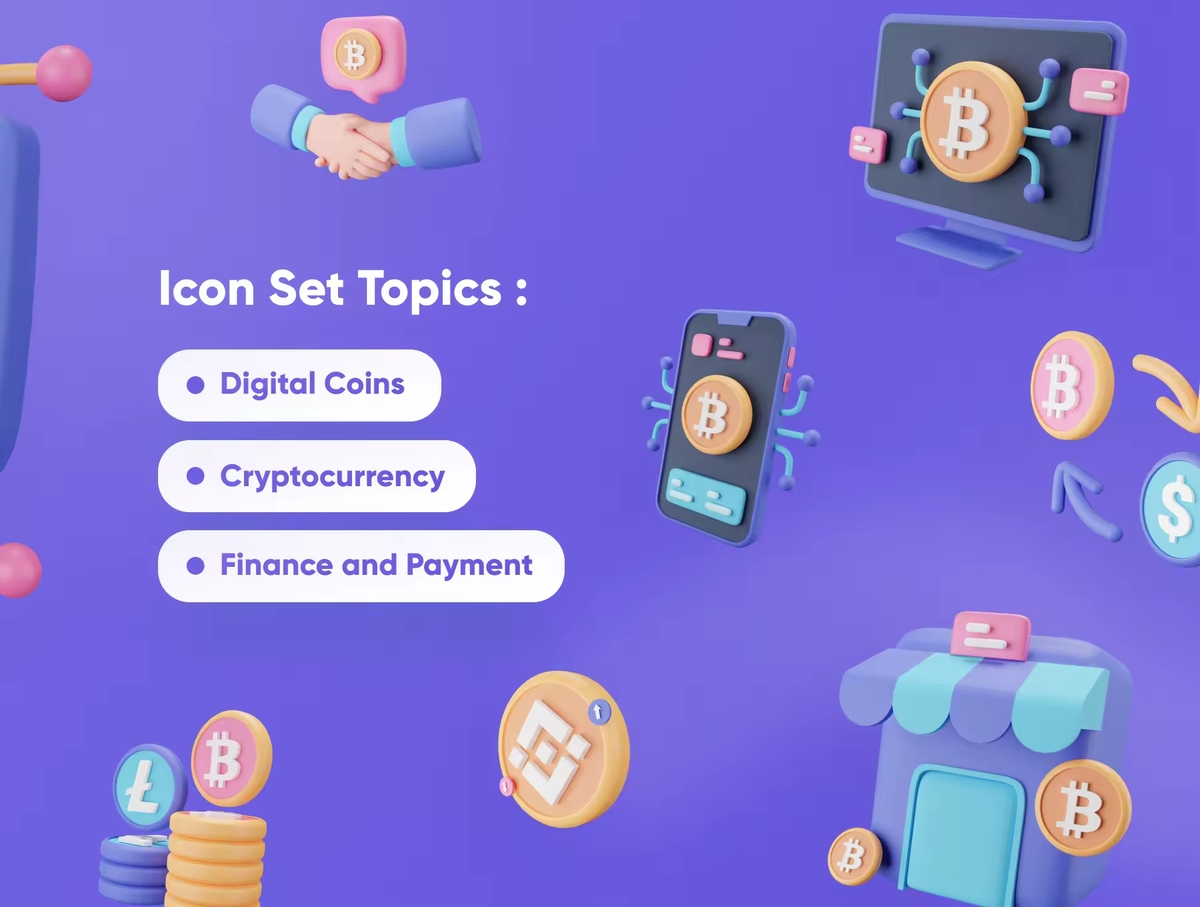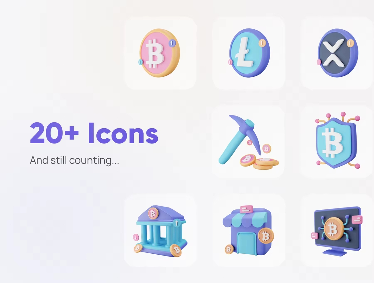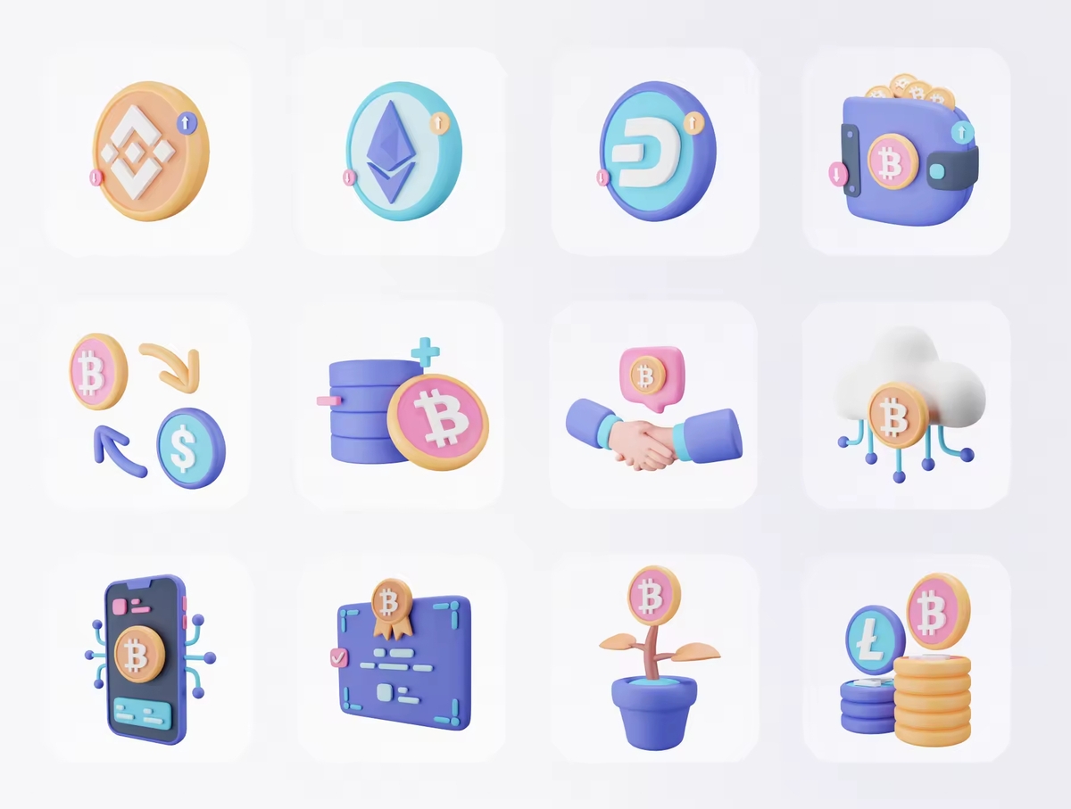 这是一组适用于任何加密货币产品的自定义 3D 图标。使用 3D 图标让您的下一个产品和项目更加惊艳。适用行业:加密货币、区块链、金融科技、投资、等等。