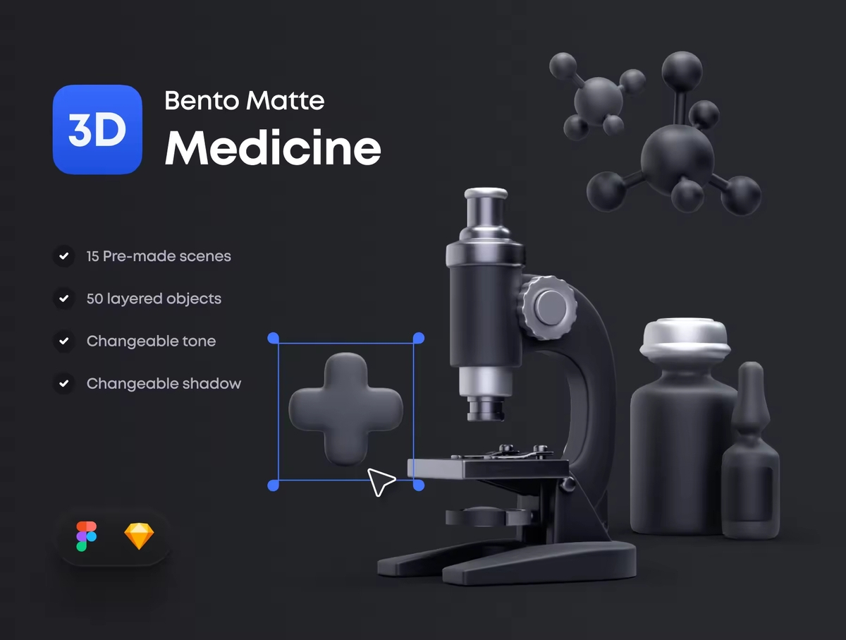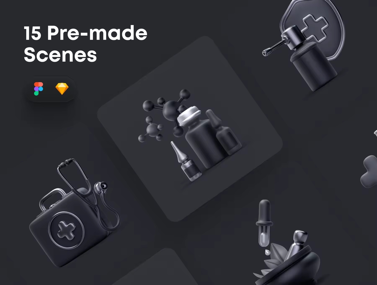 这是一组可编辑的健康和医学 3D 图标主题,内置 Figma 和 Sketch。结合不同的元素来创建引人注目的作品,帮助您在短短几分钟内为着陆页、网站、演示文稿等讲述更好的故事。