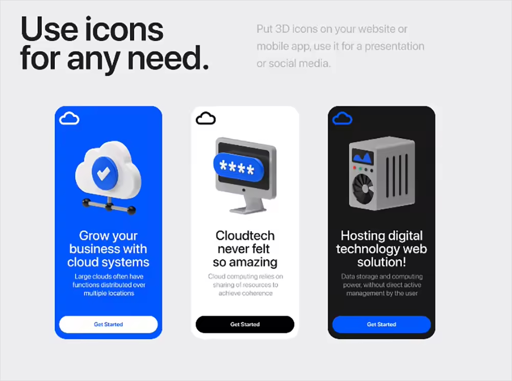 这是一组适用于任何云技术产品的自定义 3D 图标。使用这些手工制作的图标创建令人惊叹的独特项目,在 Figma 中轻松编辑。