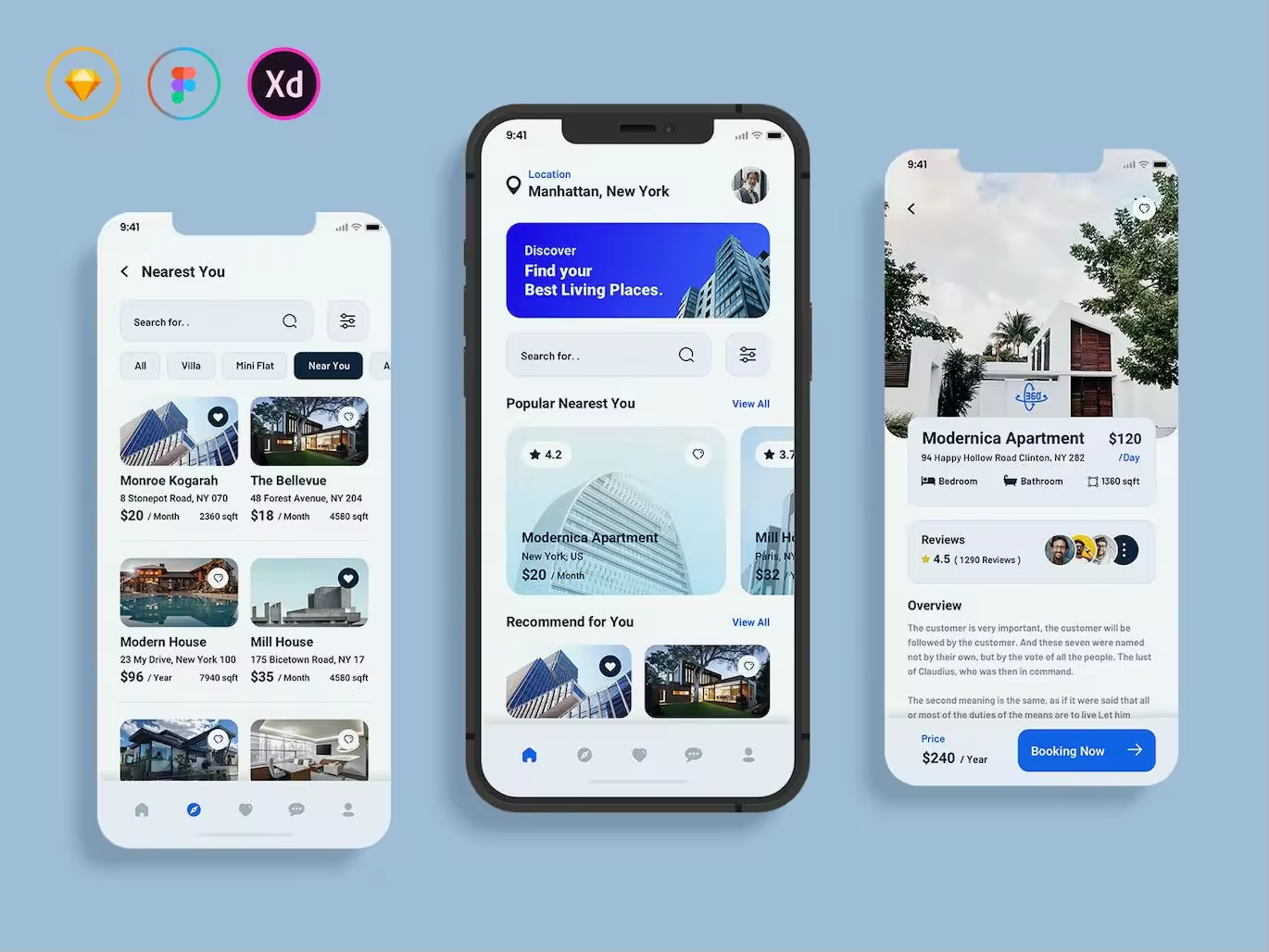 房地产移动应用程序 UI 套件。高质量移动应用程序 UI 工具包模板。我们精心制作了与房地产应用程序相关的所有可能功能。它包含每种格式的 35 个屏幕。每个屏幕都是完全可定制的,易于使用,并在 Sketch、Figma 和 Adobe XD 中精心分层和组织。