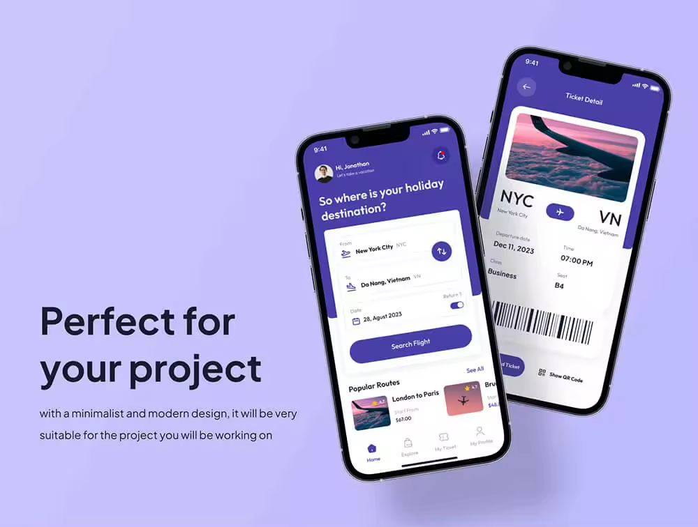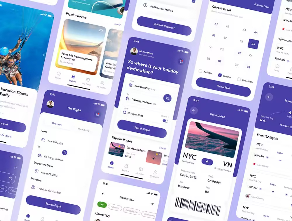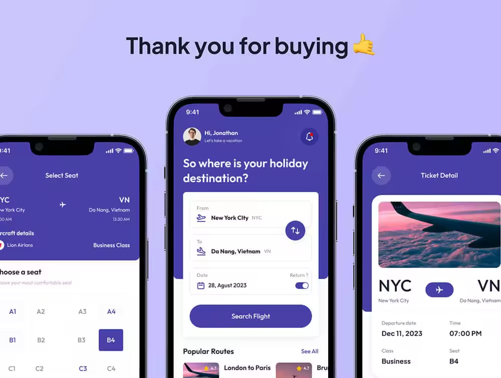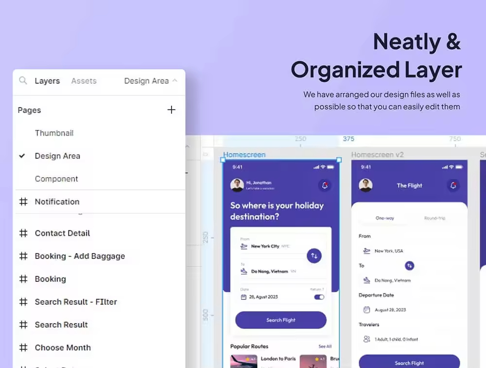 具有 40 多个屏幕的航班预订应用程序。已经为每个组配备了分组和命名,以便您可以更轻松地编辑它。使用此 UI 工具包,您可以更轻松、更快速地处理您的个人项目。