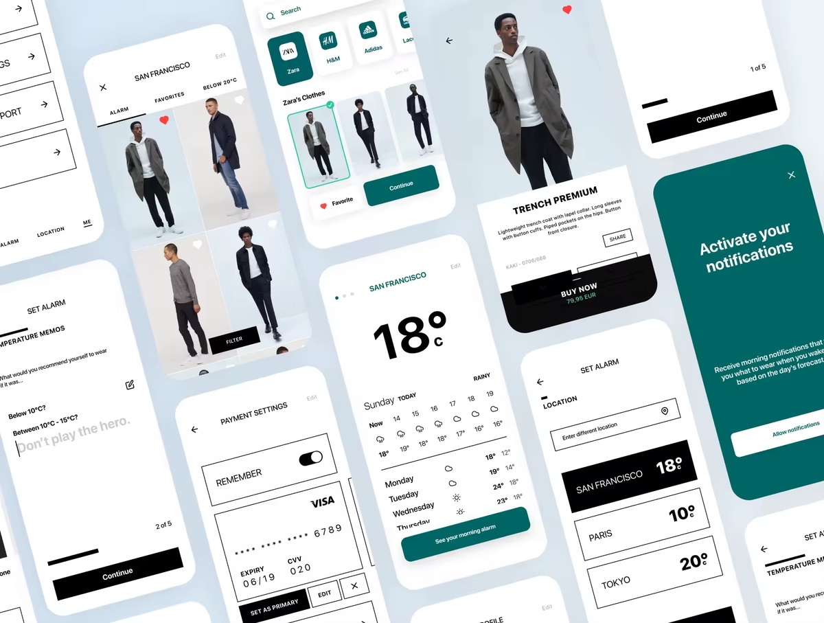 这款天气着装App UI KIT旨在根据每天的天气预报,为您提供每天早晨穿什么衣服的建议。此应用程序UI套件可为您提供建议和电子商务功能。用户可以根据温度偏好,服装品牌轻松定制自动警报,还可以购买自己喜欢的服装并获得详细的预测。附加功能也可以在应用程序中找到。应用程序的电子商务方面可以通过与服装品牌进行交易来帮助为应用程序带来额外的收入。