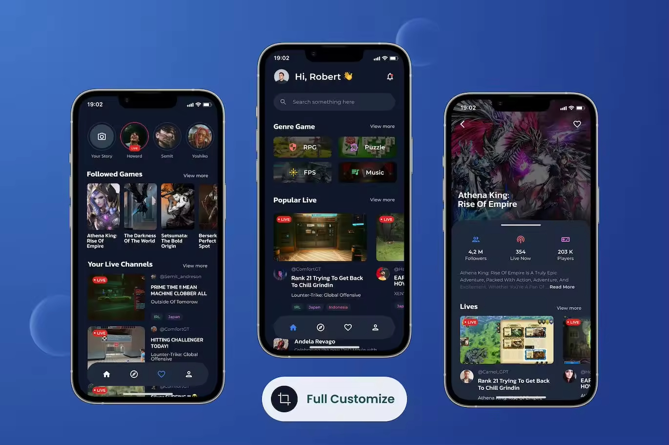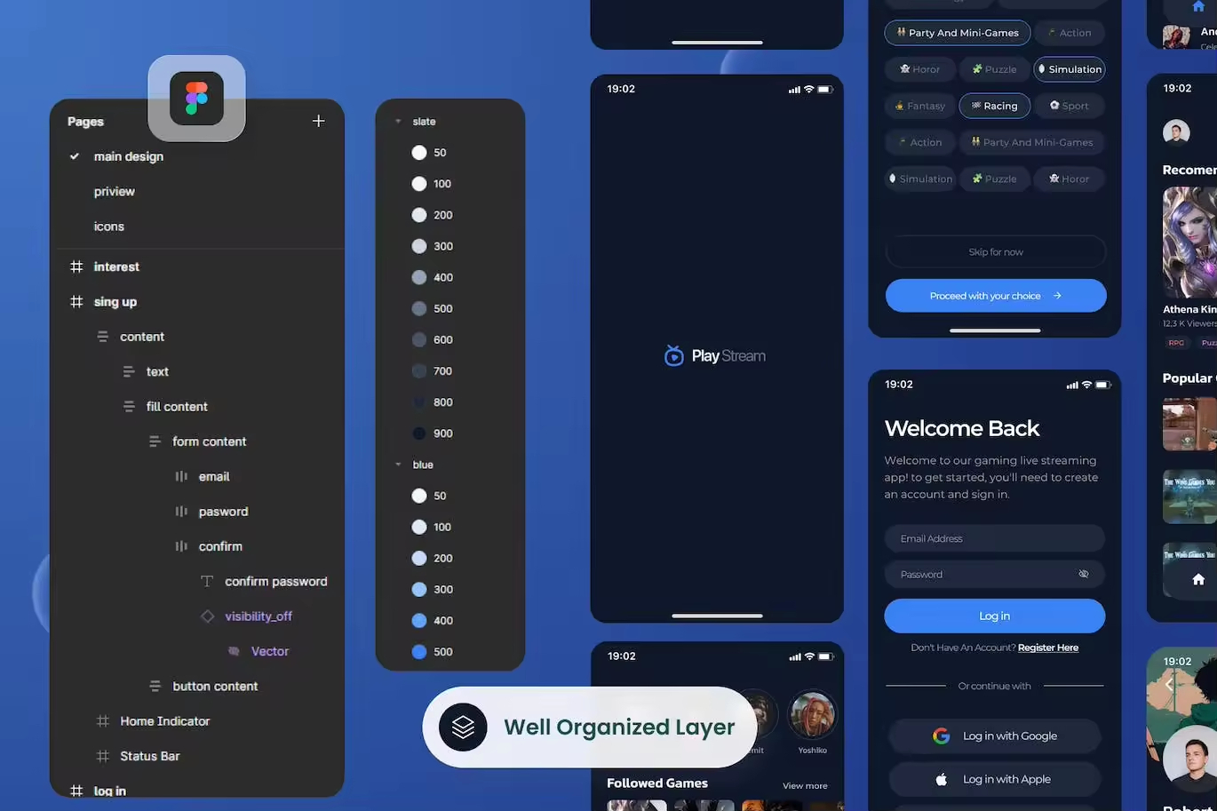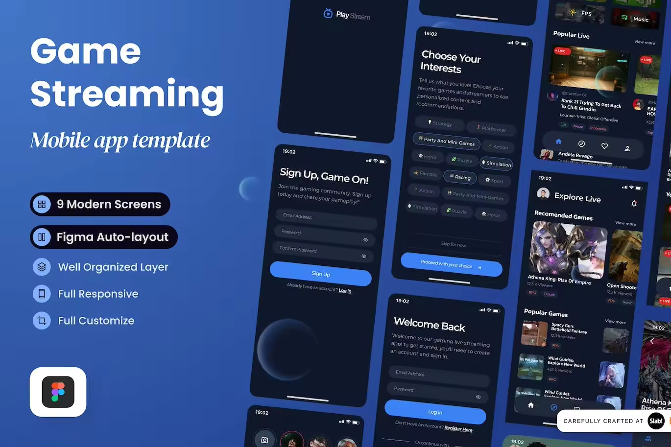 它是游戏流媒体平台的移动应用程序。易于编辑、自定义和调整大小,因为矢量形状和组织良好的图层。