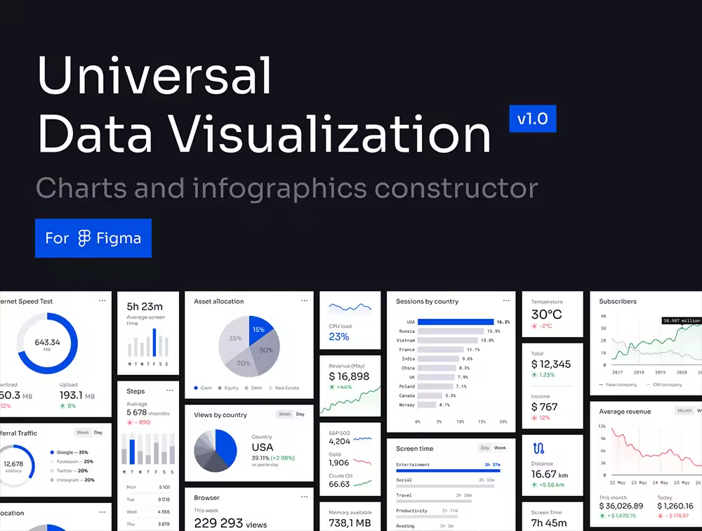 用于在 Figma 中创建图表和信息图表的高质量工具。在几秒钟内可视化数据的简单方法。