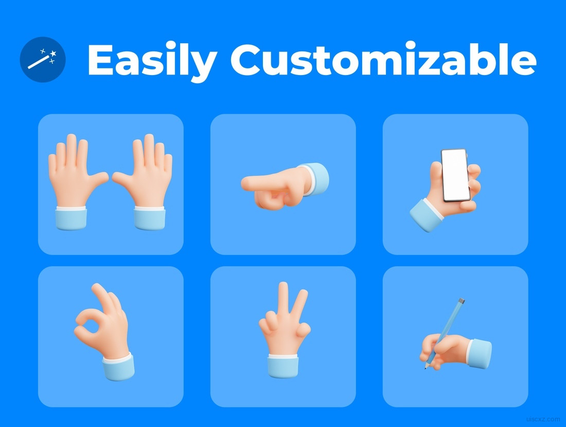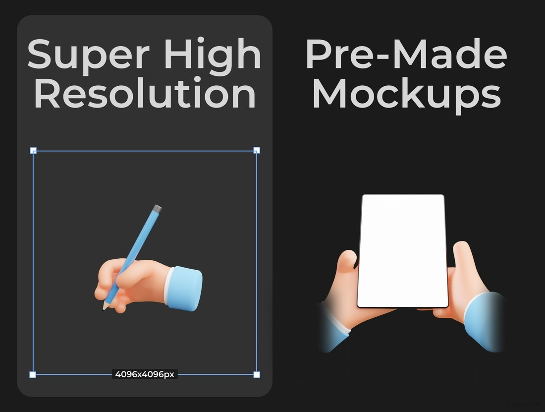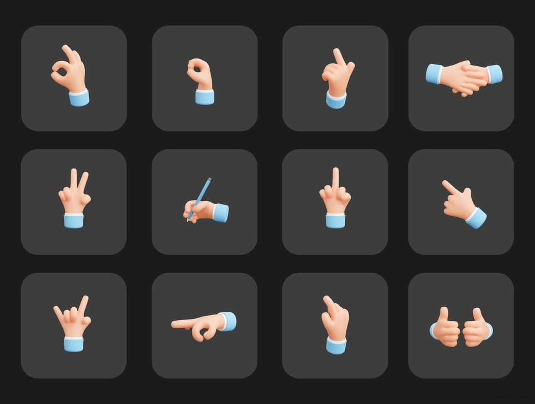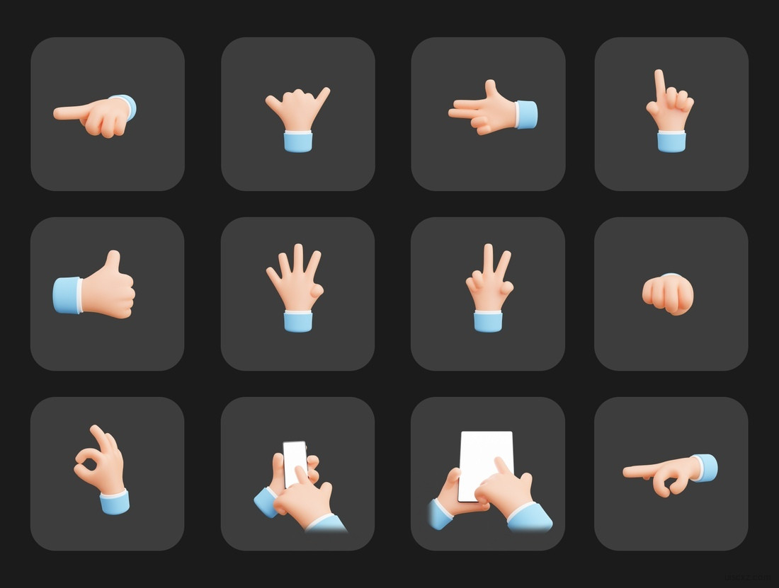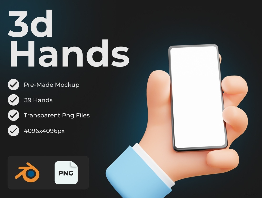 3D小胖手、3D卡通手势手持样机blend源文件高清源文件3D资源下载