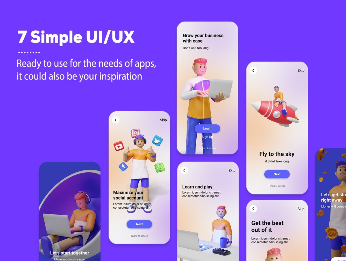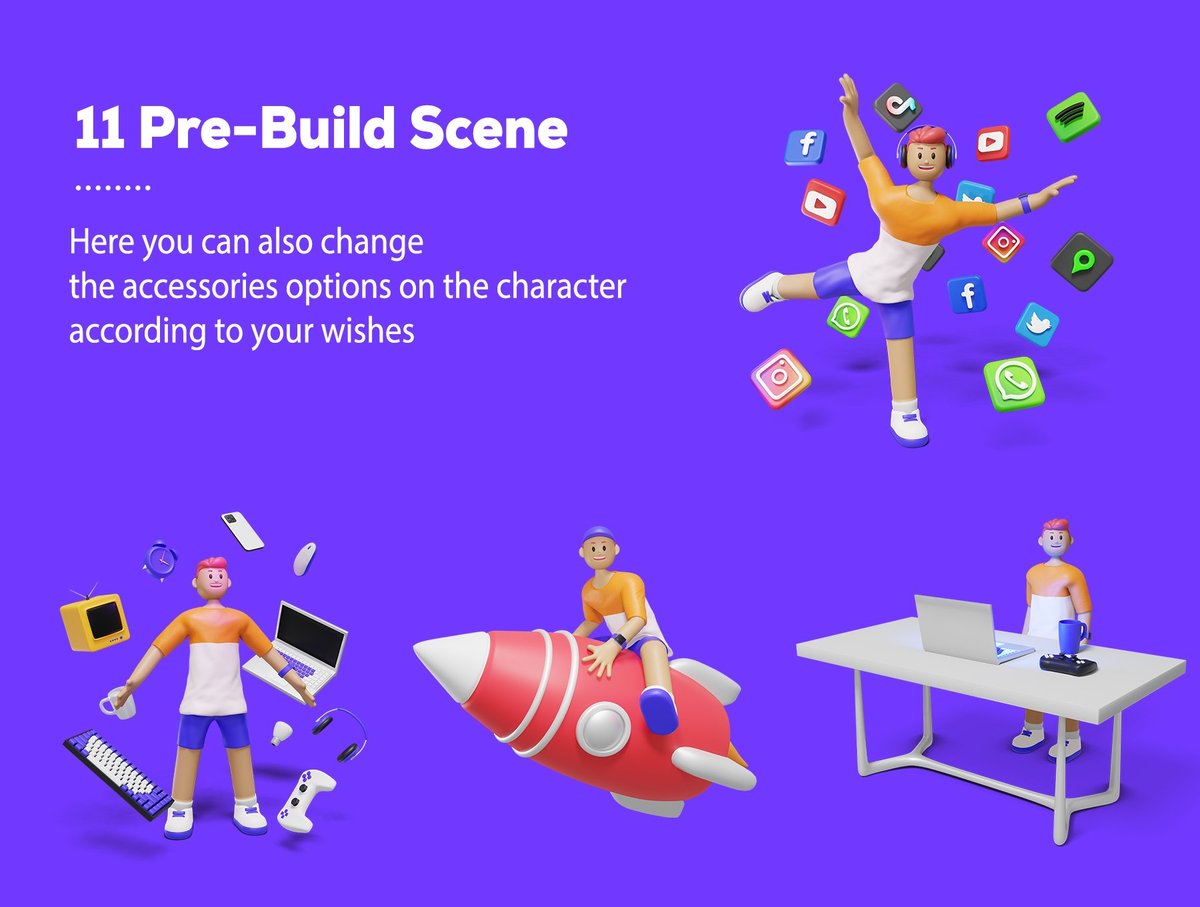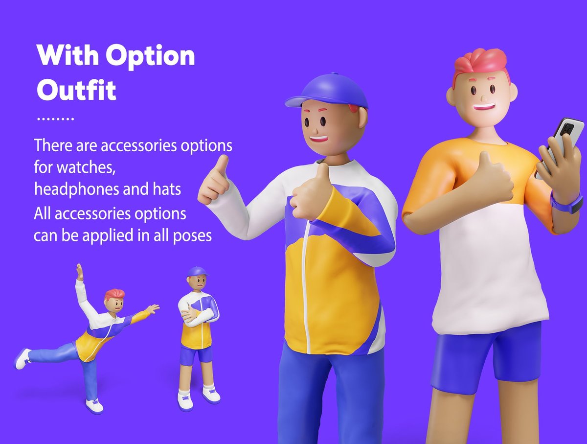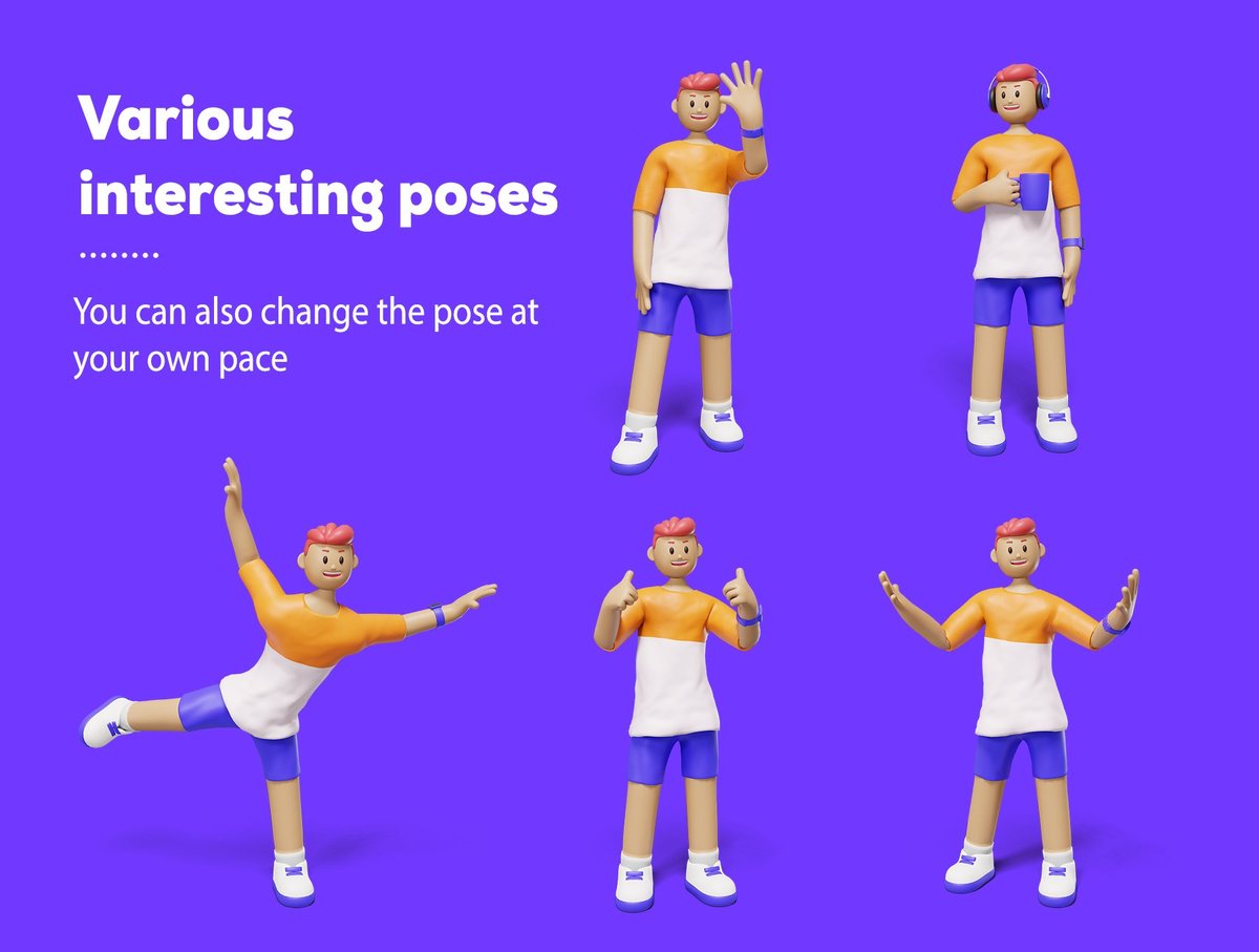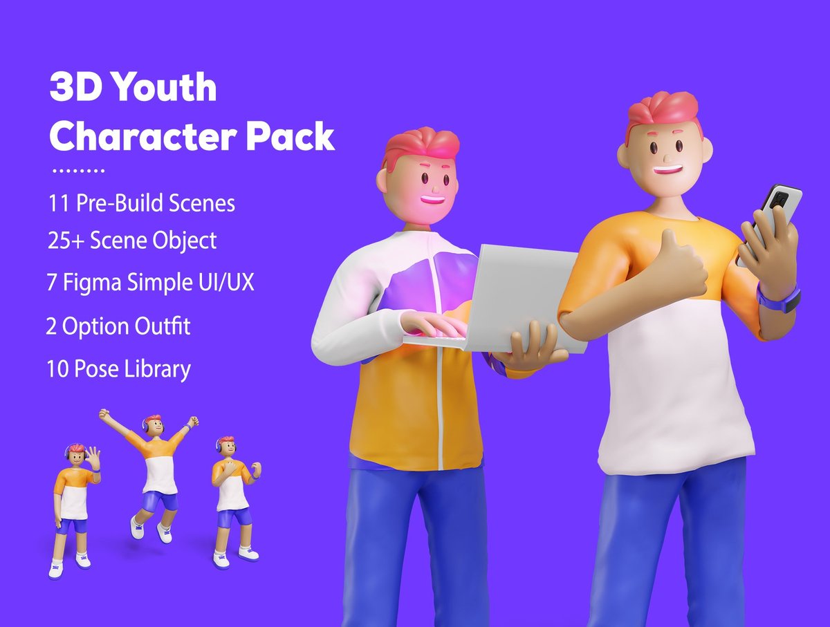 这套青春风格的3D人物角色插画素材,融合了非常新鲜和现代的色彩,这个角色适合您作为网络、应用程序开发或其他方面的需求。