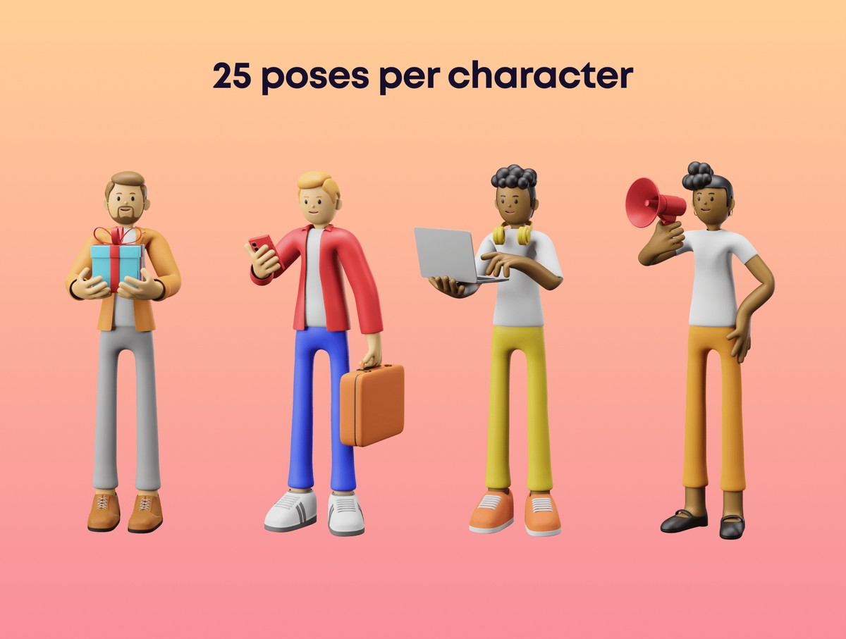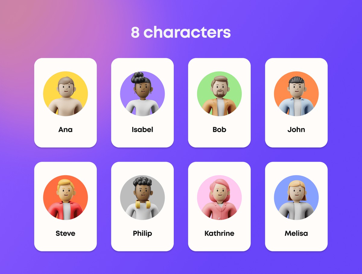 3D角色插图用于您的网站、应用程序或公司,使您的图形更有趣,吸引更多观众。在figma中构建自己的场景。8个不同的角色,你可以为你的工作选择,也可以在搅拌机里摆出自己的姿势。