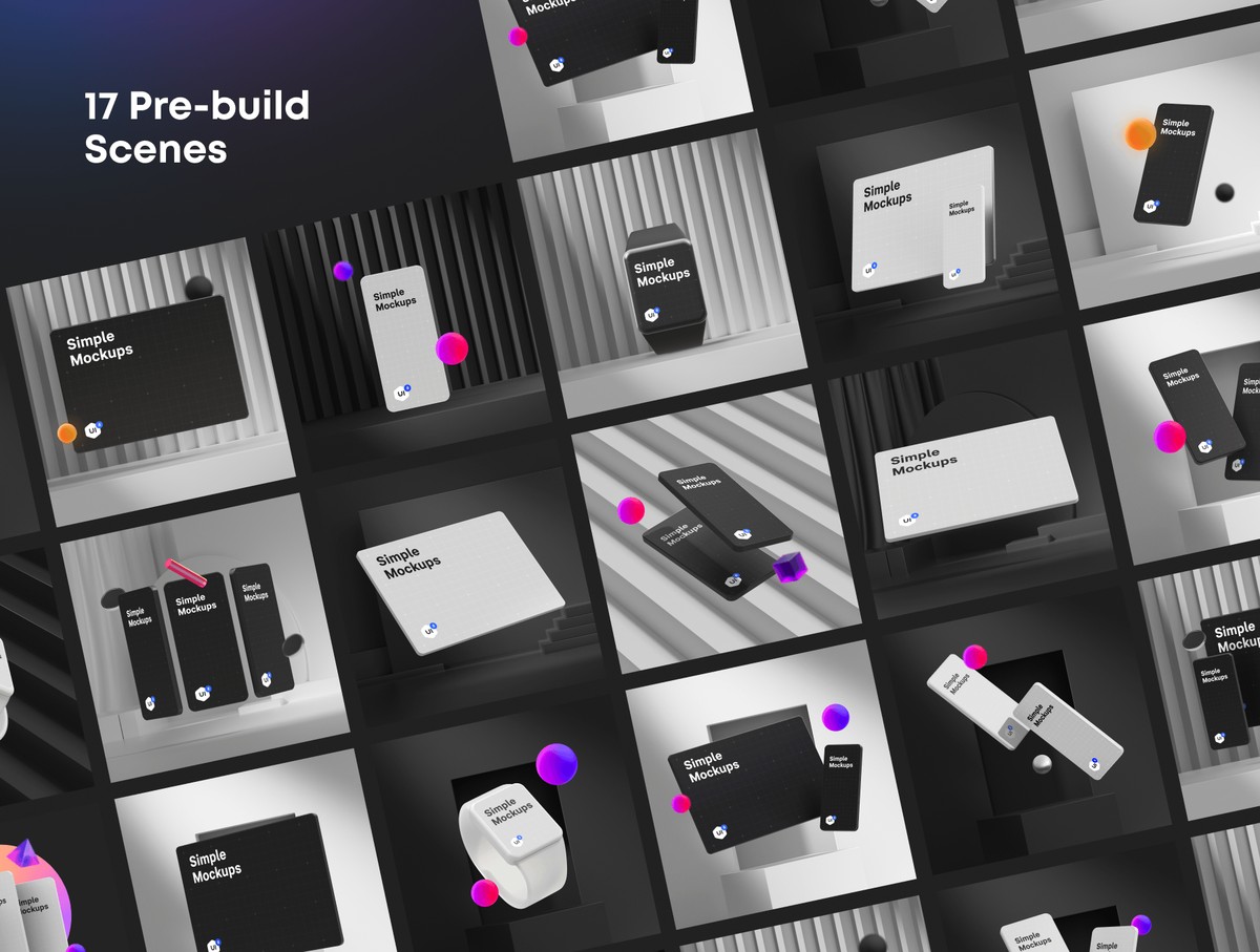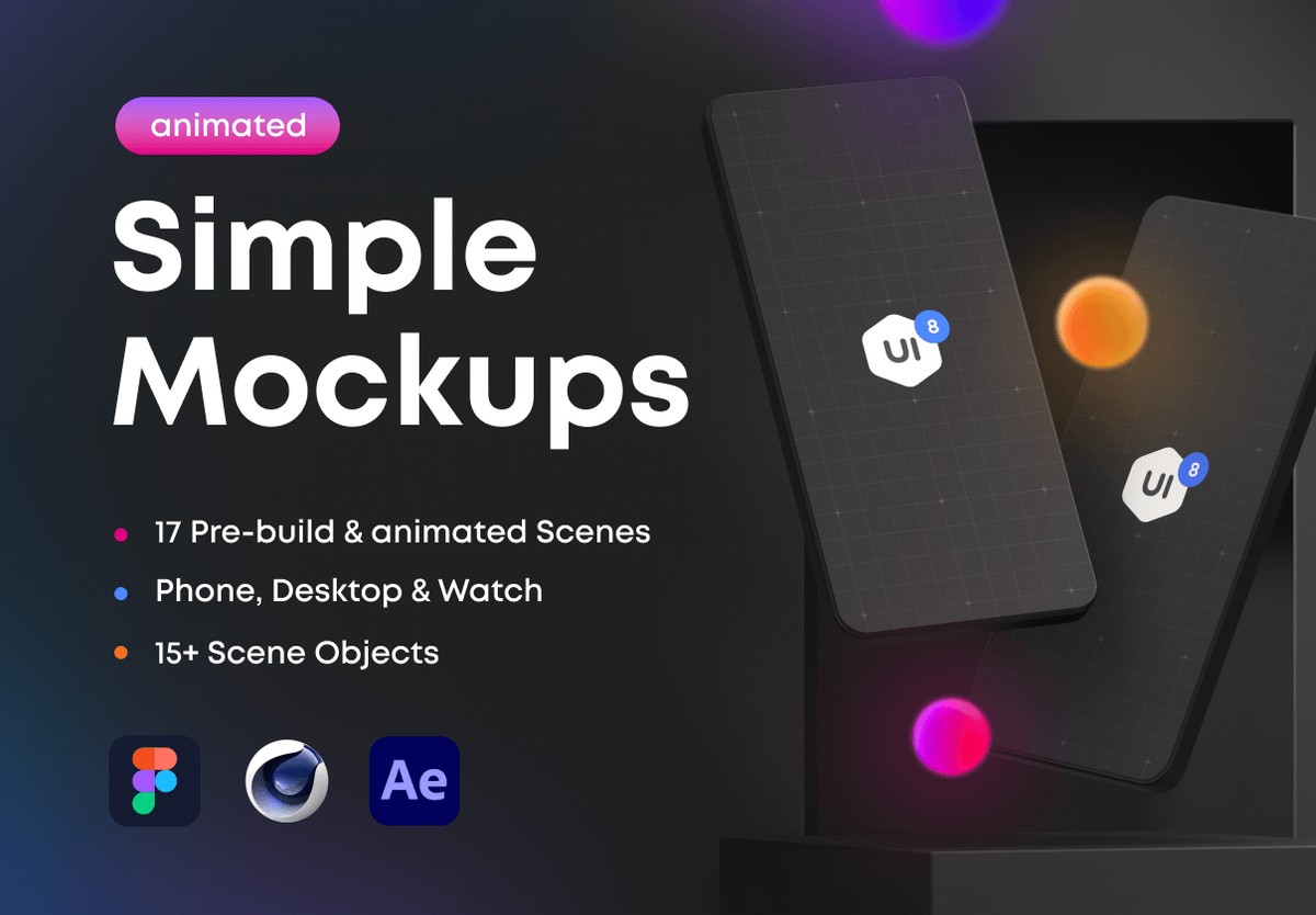 Simple Mockups是一个不断增长的高分辨率演示模型库,用于展示移动和网络项目。非常适合设计快照、社交帖子,或者任何你需要简单、干净、时尚的演示文稿的地方。您可以在Figma中混合和匹配不同的对象来创建自己的场景,只需使用Mockup插件应用UI设计,或使用Cinema4D或微妙的动画After Effect文件(新)完全修改场景。