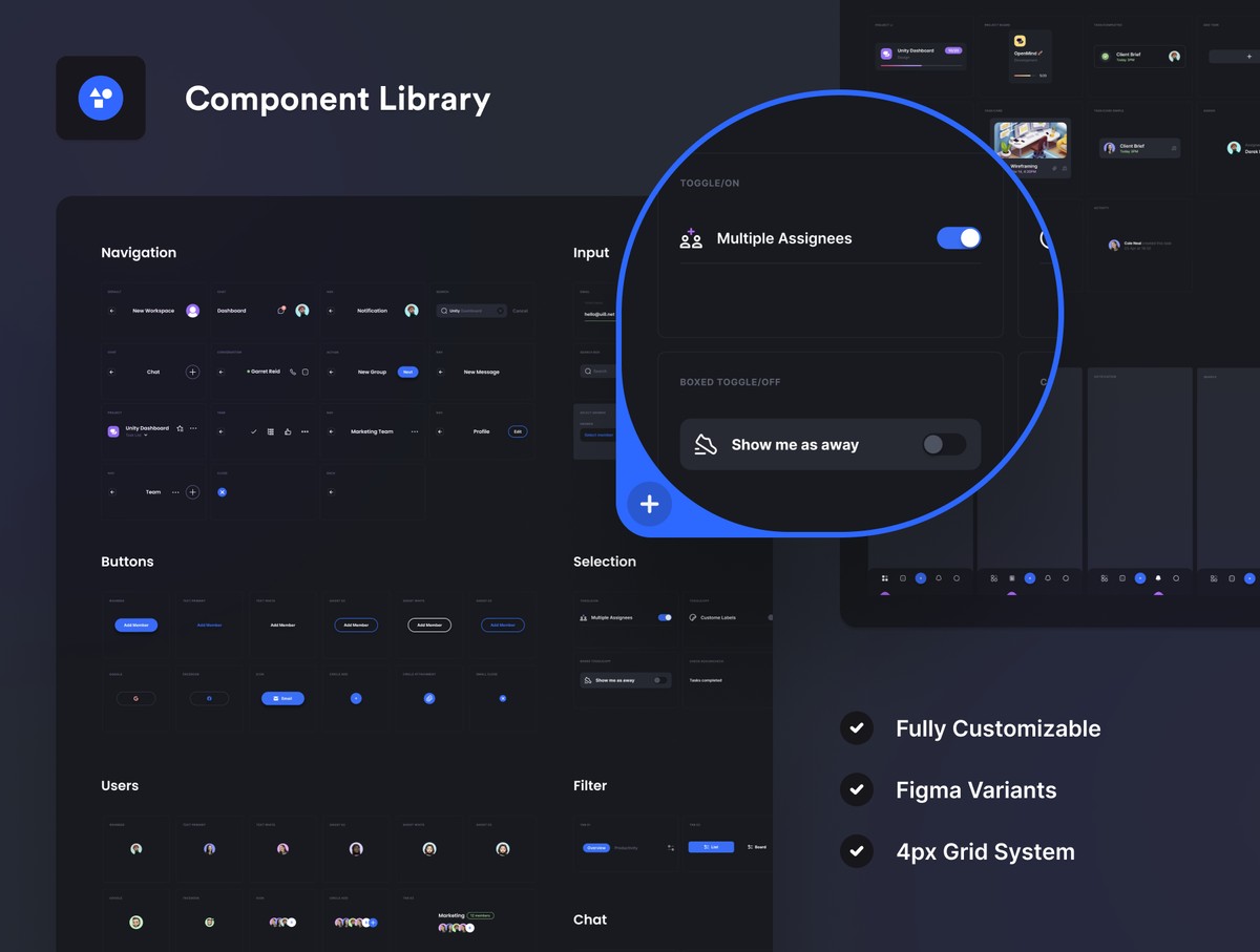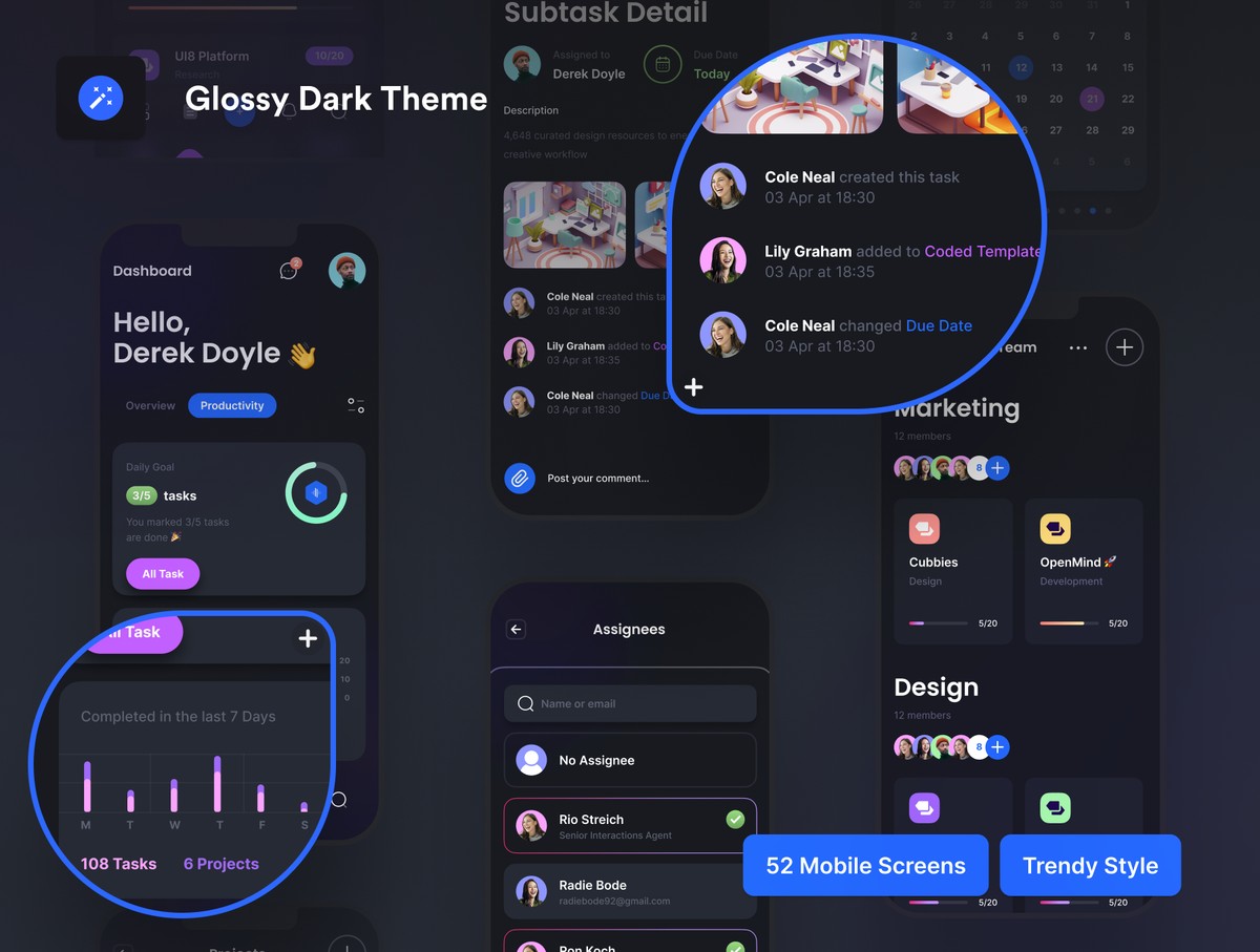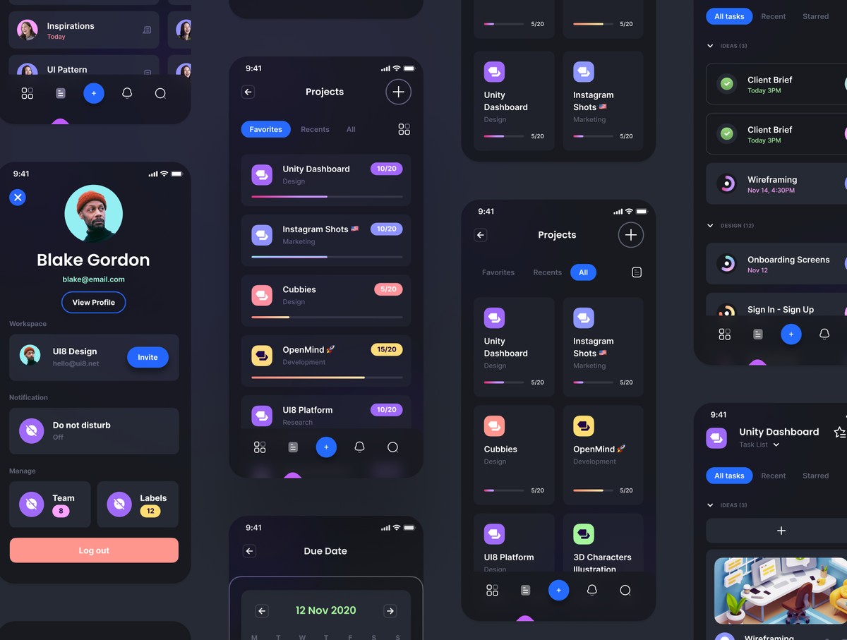 这是一款适用于Figma的生产力应用程序iOS UI套件。该套件包括52个时尚的屏幕和数百个组件,可帮助您更快地交付下一个产品。屏幕类型包括:入职,登录/注册,仪表板,内容创建,聊天,项目,任务和设置。