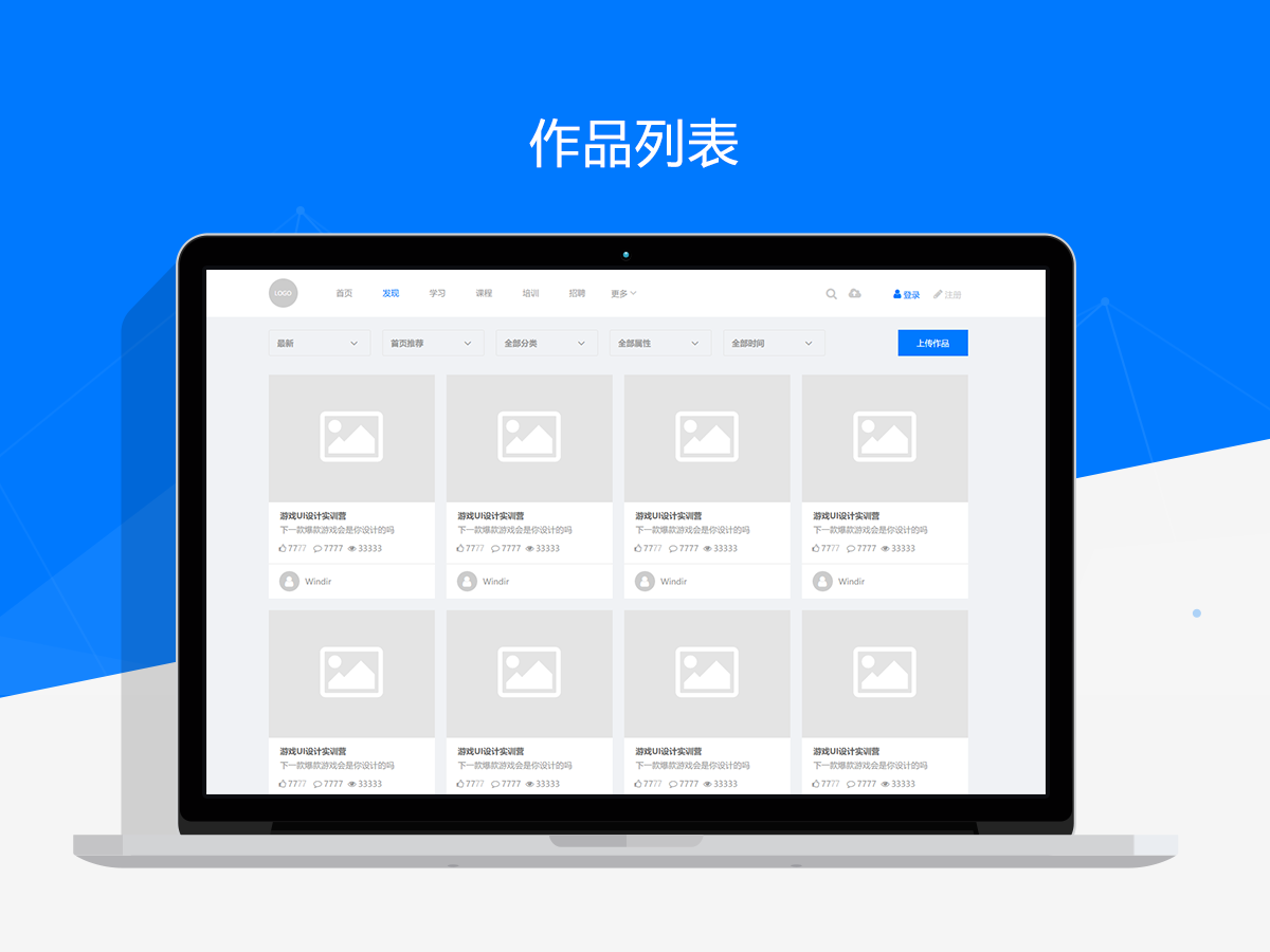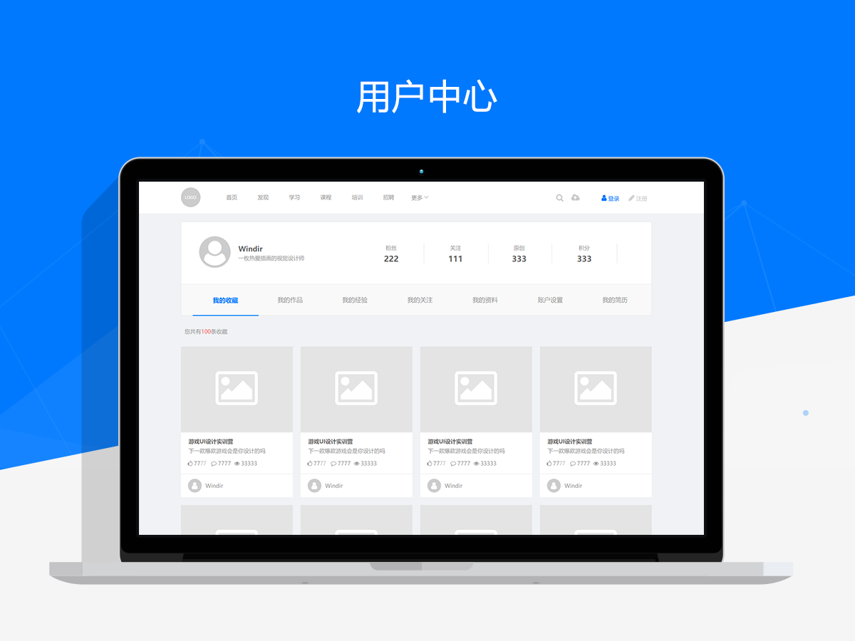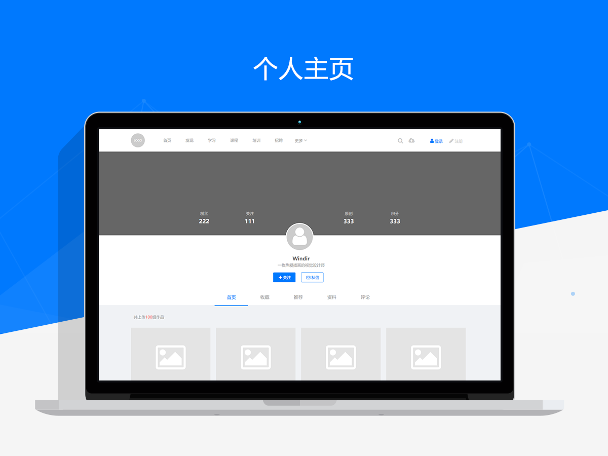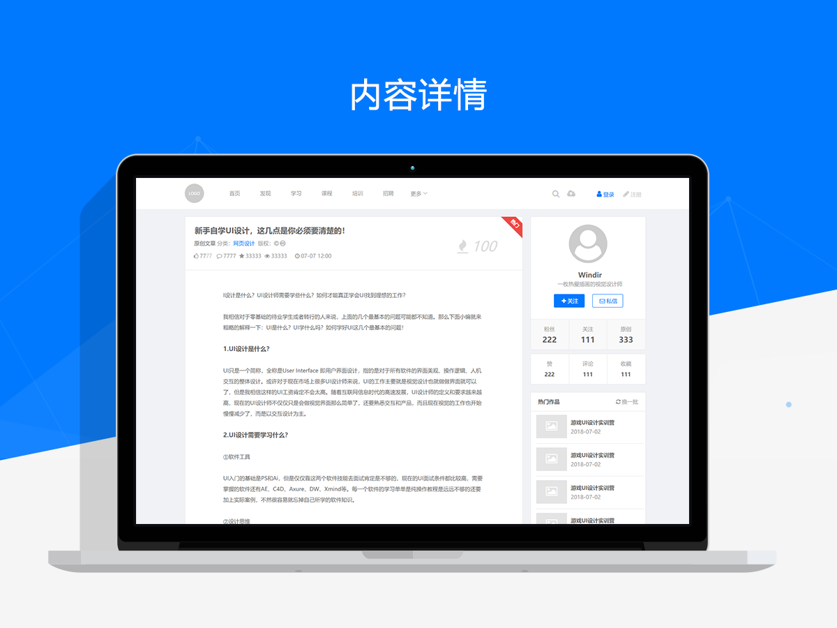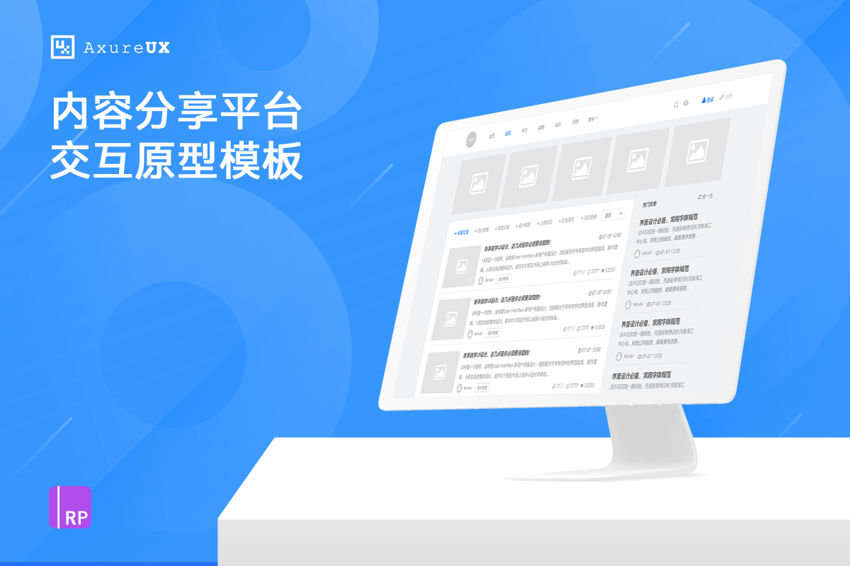 一套内容分享平台交互原型模板,包含网站首页、作品列表、内容详情、个人主页、用户中心、用户注册登录及页面。