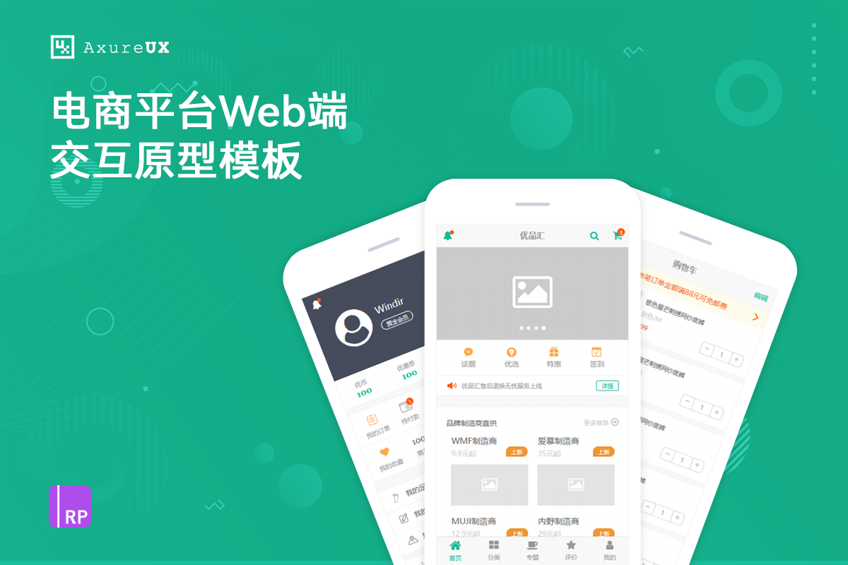 本作品是一套高保真移动端电商APP产品原型模板,包含了用户中心、会员成长、优惠券、积分、互动社区、运营推广、内容推荐、商品展示、订单流程、订单管理、售后及服务等完整的电商体系功能架构和业务流程。本模板由一百三十多个界面上千个交互元件及事件组成、交互效果完成率95%以上,其中很多界面和交互元件都是在所有的APP产品中通用的,只要稍作修改就可以快速复用到您的项目原型中。另外,本模板在设计过程中遵守了AxureUX移动端元件库中的相关标准和规范,具有便于修改和方便维护的特点,无论对于交互设计师还是产品经理,都是一套绝佳的学习和参考的原型模板。
