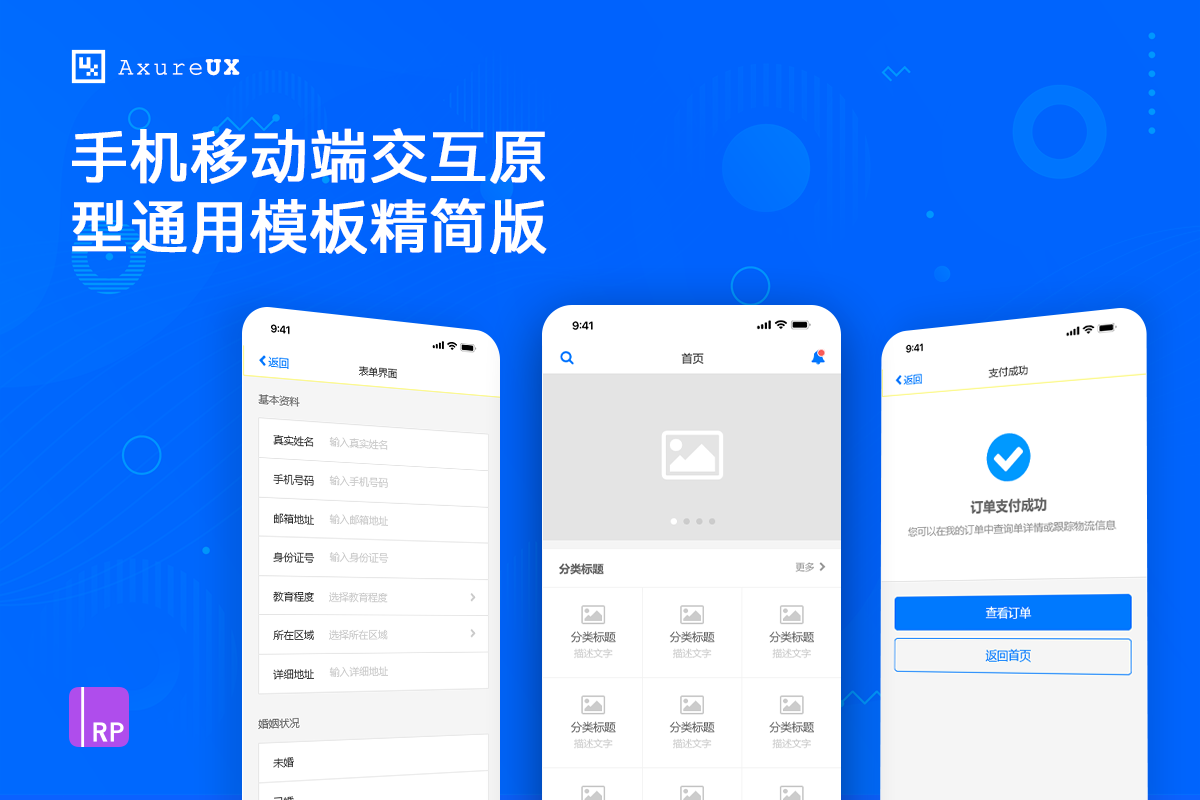 一套精简的手机移动端交互原型通用模板,包含移动端常用界面模板、微信小程序模板、支付宝小程序模板、常用手机设备模型等资源。